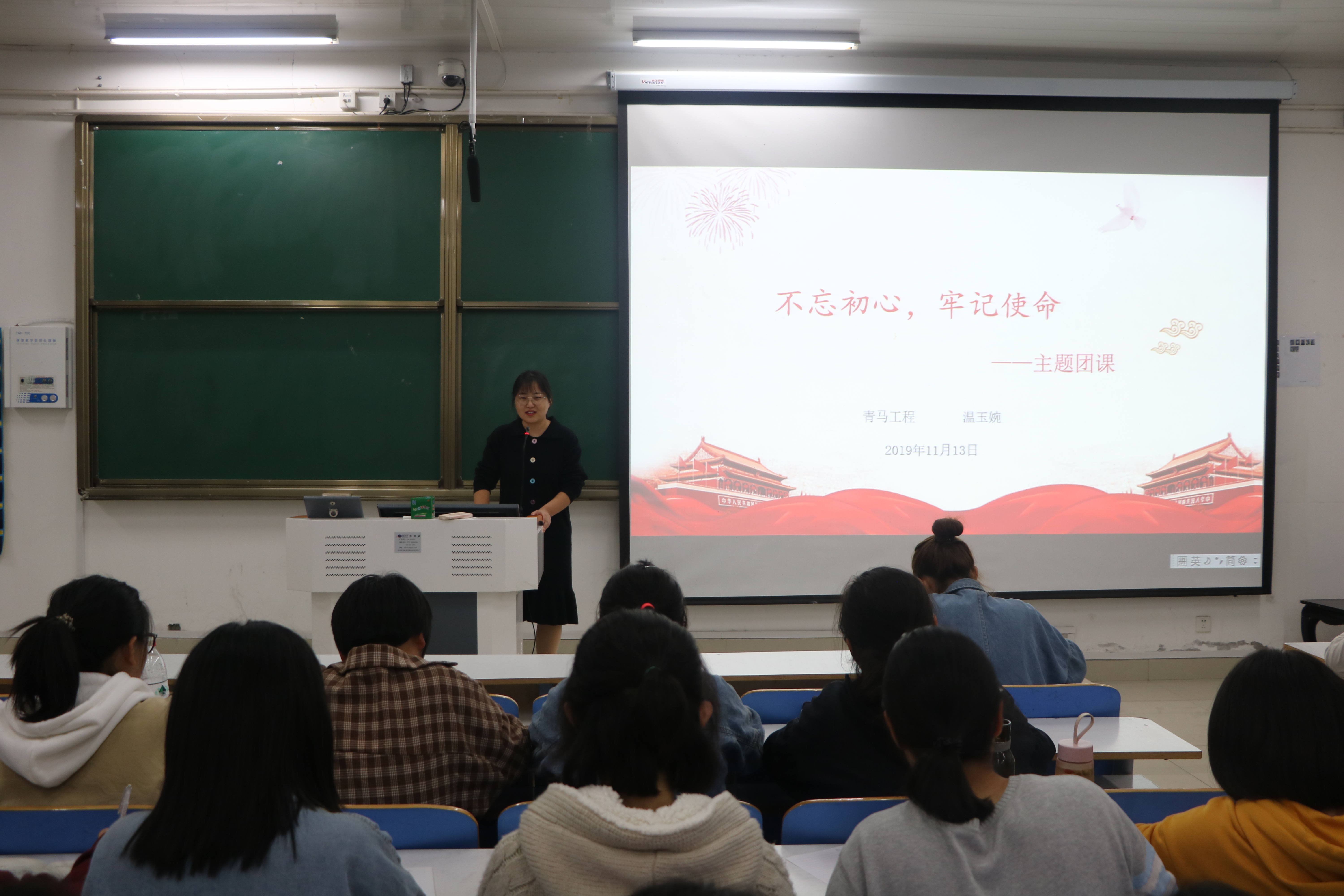 11月13日晚,beat365亚洲版官网“青马”工程学员在社科楼516教室为beat365官网新生团员讲授团课,团委副书记肖妍杰、学生会副主席王雅纯及2019级全体团员共同聆听了本次团课。团课由“青马”工程学员代表温玉婉、黄子晋讲解。