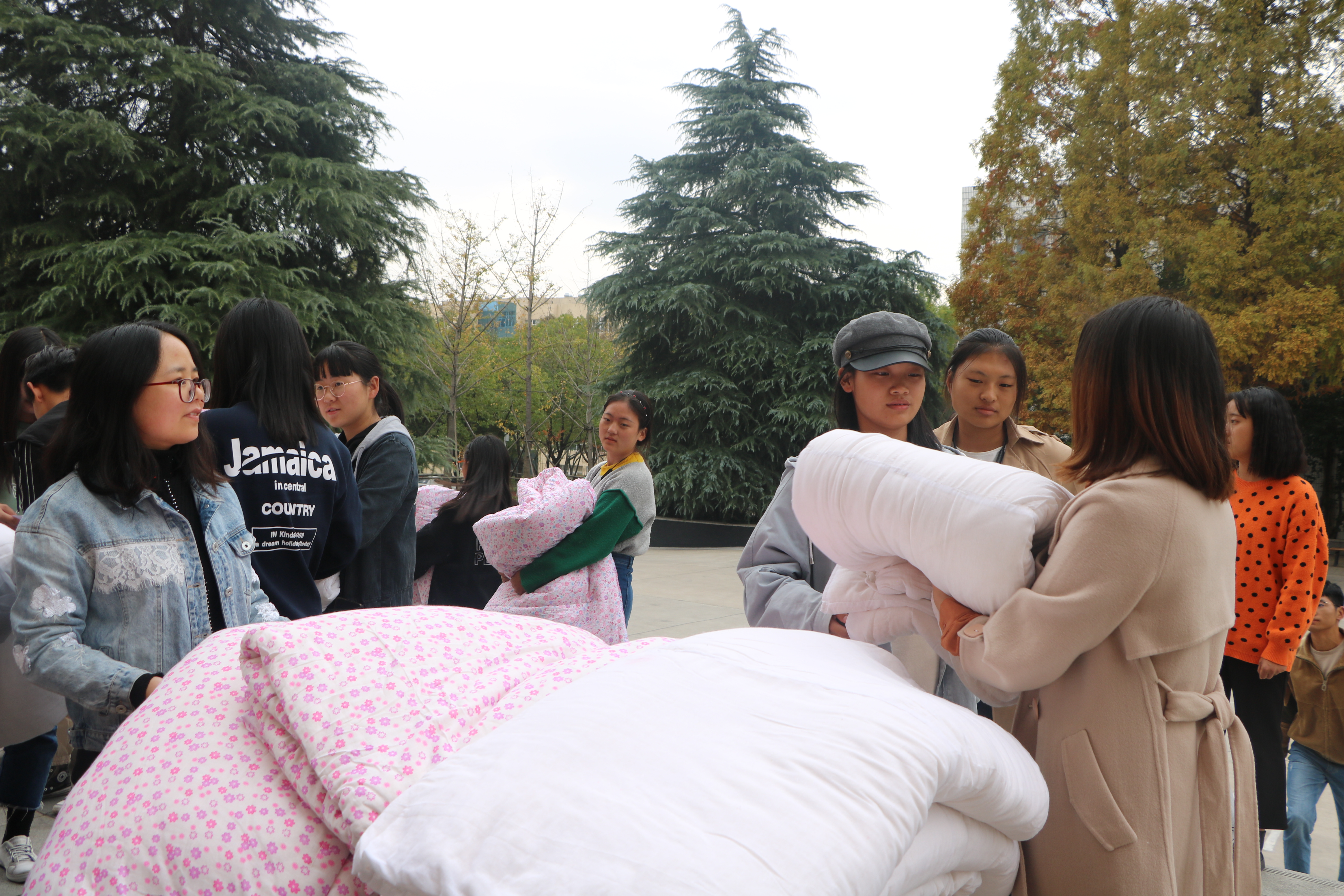 爱心棉被,情暖寒冬。11月15日下午,beat365亚洲版官网在教八楼举办爱心棉被发放仪式,团委老师曹菁菁、陶青青以及学生会副主席刘雅丹共同为beat365官网学子发放爱心棉被。仪式由生活劳卫部刘晓哗主持。