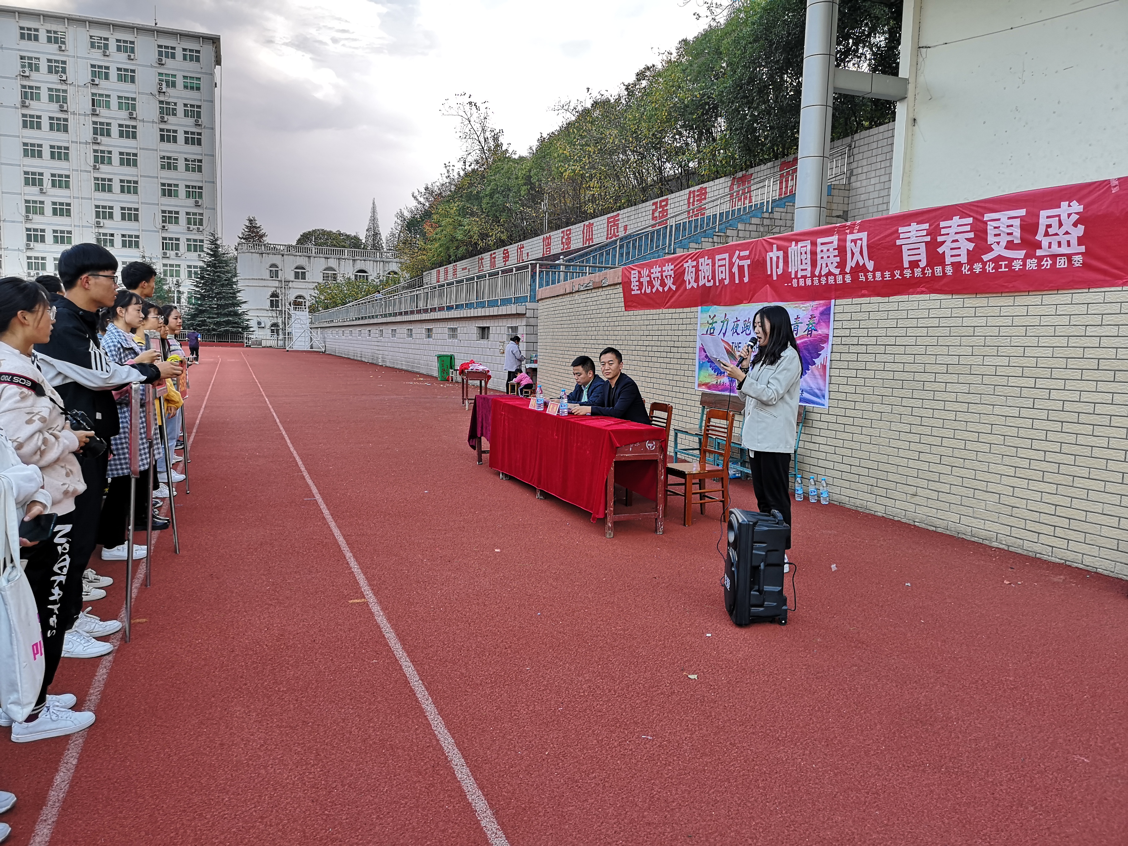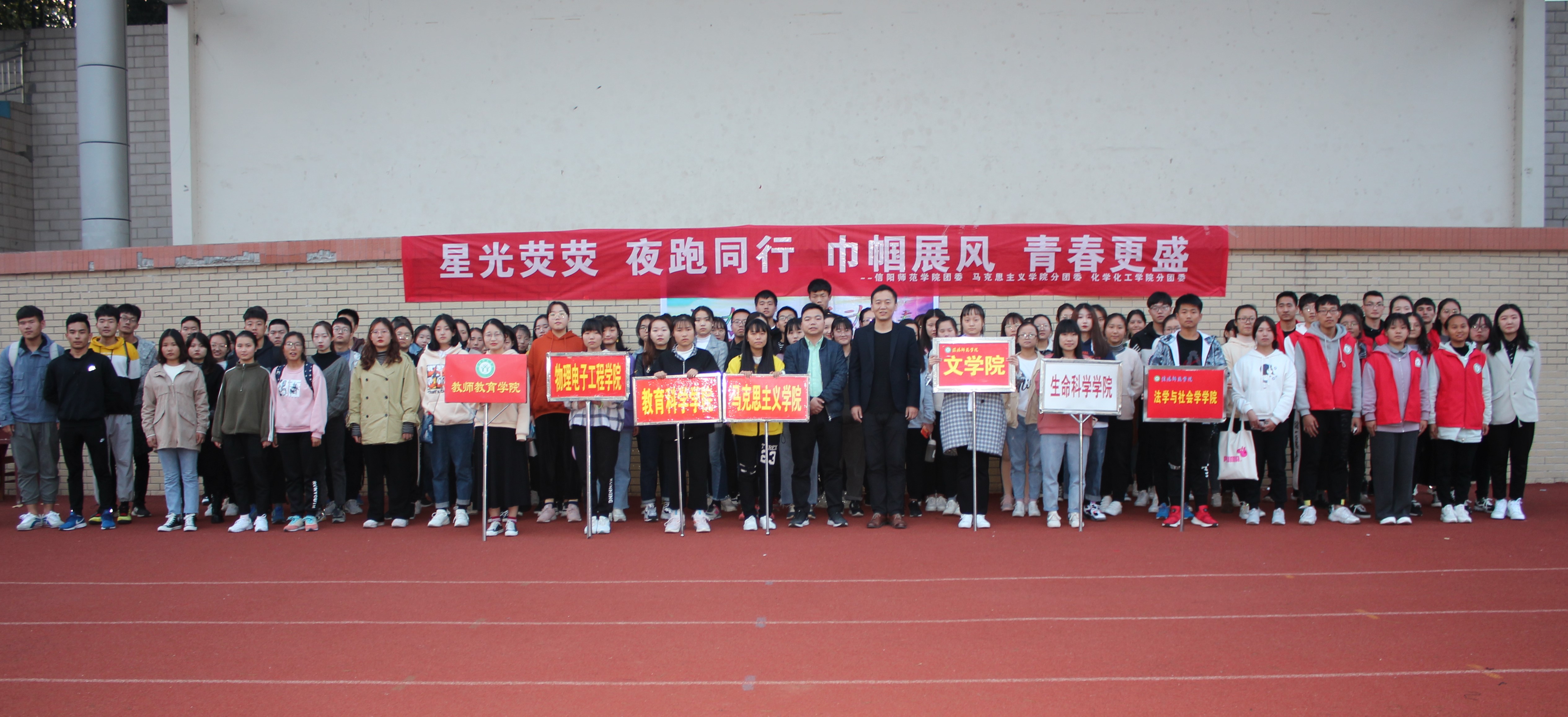 11月15日下午,由信阳师范学院校团委主办,beat365亚洲版官网和化学化工学院联合承办的“活力夜跑,跃动青春”夜跑活动开幕式在西操成功举行。beat365官网团委书记曹栋,化学化工学院团委书记邓耀辉以及各院夜跑活动的参与者共同参加本次开幕式。开幕式由化学化工学院学生邵瑾主持。