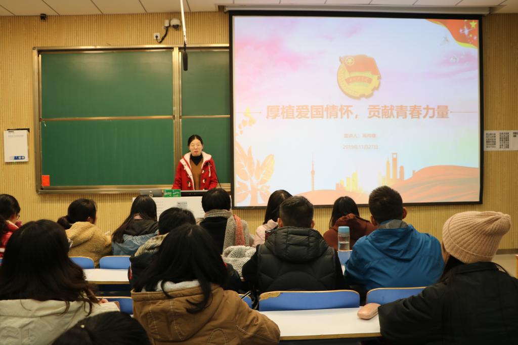 11月27日晚上,beat365亚洲版官网“青马”工程学员高祎棣、张晓艳在社科楼515教室为新生团员讲授第六次团课。beat365官网2019级全体新生共同聆听本次团课。团课由肖妍杰主持。