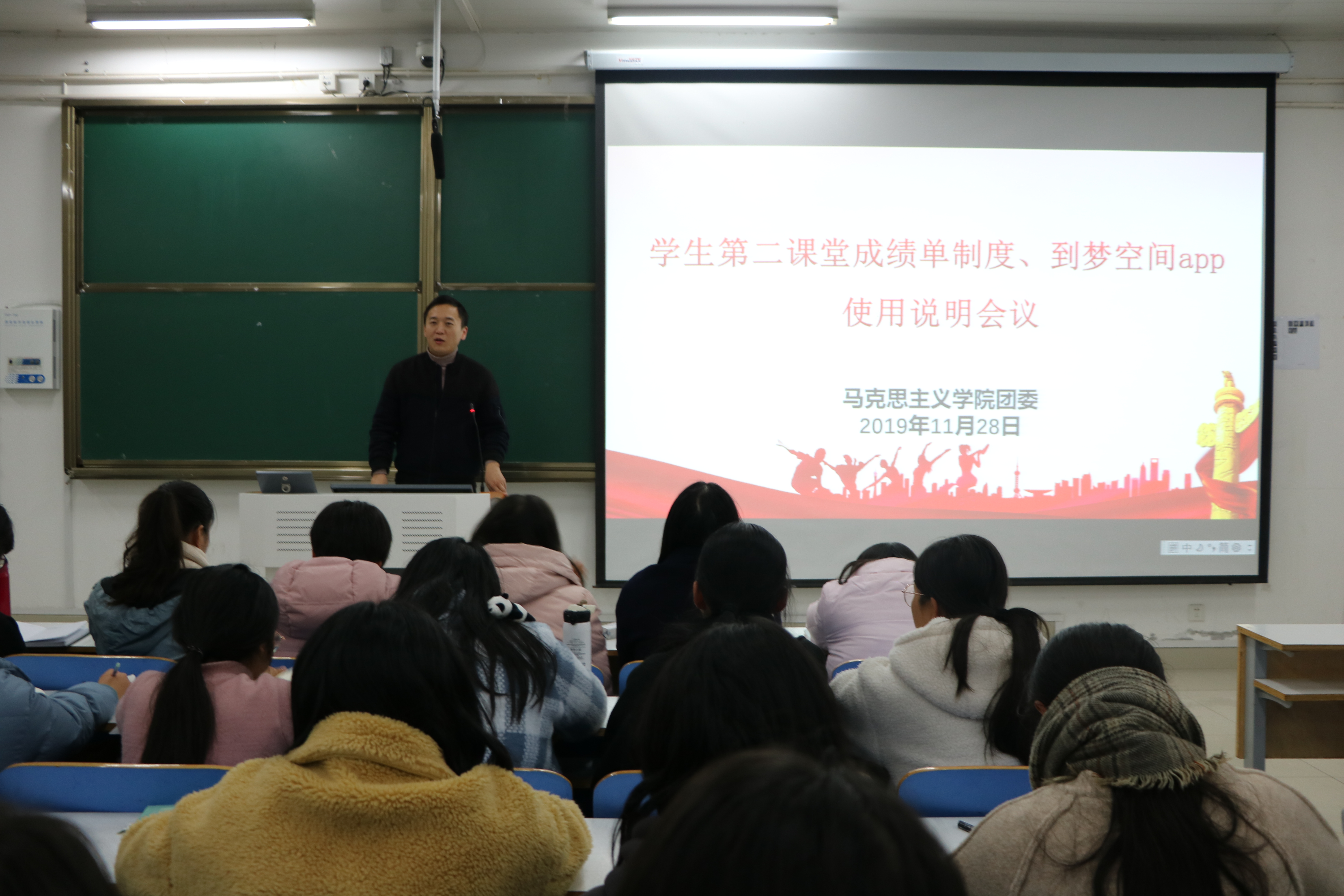 为帮助同学们熟悉并掌握“到梦空间”软件的使用规则,发挥第二课堂的辅助作用,11月28日下午,beat365亚洲版官网团委在社科楼516教室召开第二课堂成绩单制度与“到梦空间"软件使用说明会。beat365亚洲版官网团委书记曹栋、学生会主席团成员、学院到梦空间负责人及2019级全体学生共同参加本次会议。会议由曹栋主持。
