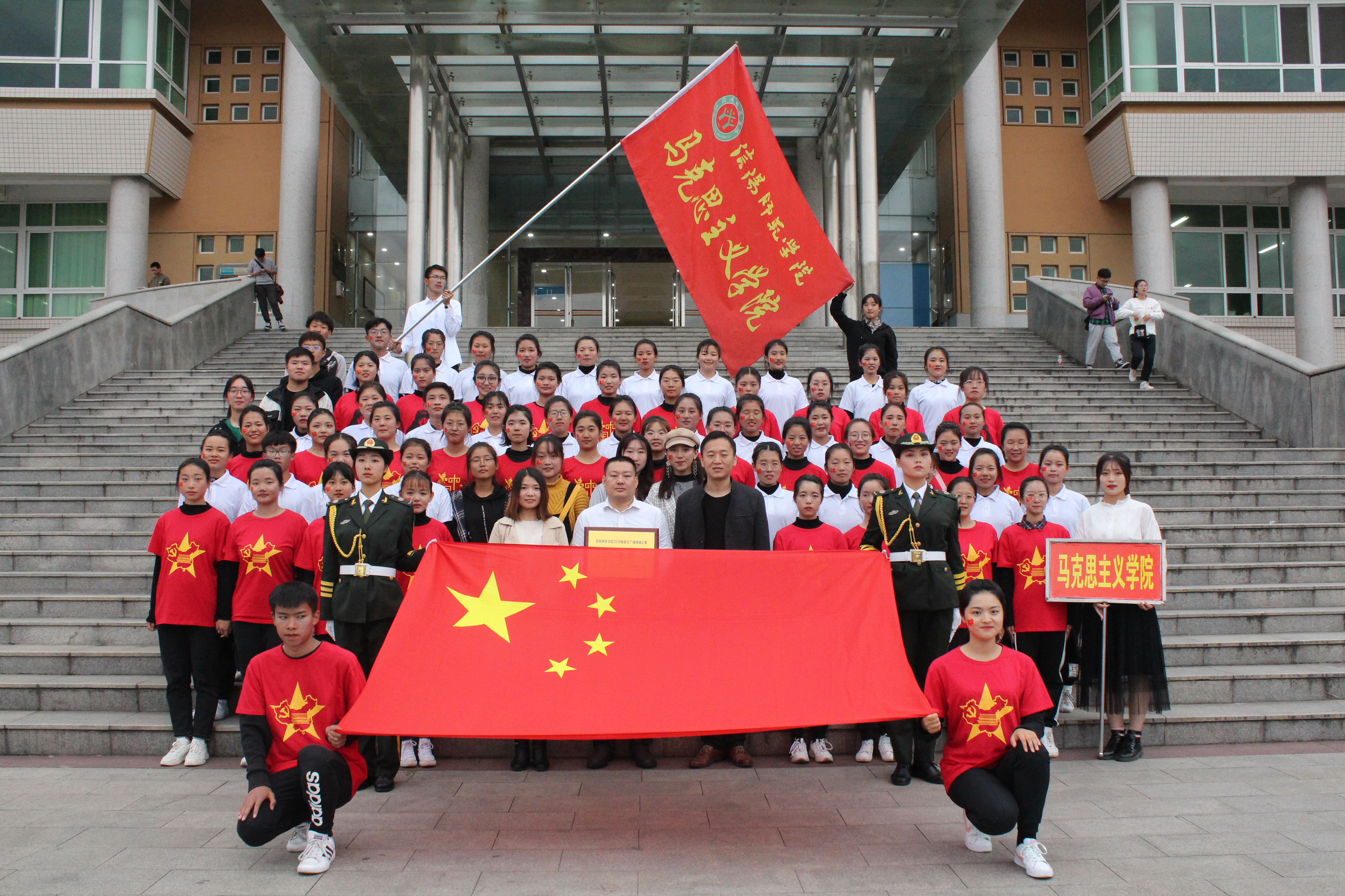 砥砺奋进扬风采,马院青年勇争先。11月12日下午,信阳师范学院2019级新生广播体操比赛在青年广场顺利举办。地理科学学院团委老师曹鹏鹏,信阳师范学院学生会主席韦秋存以及各学院学生会负责人共同观看本次比赛。beat365官网党委副书记何晓坚、团委书记曹栋和团委老师陶青青亲临比赛现场慰问beat365官网参赛学生。