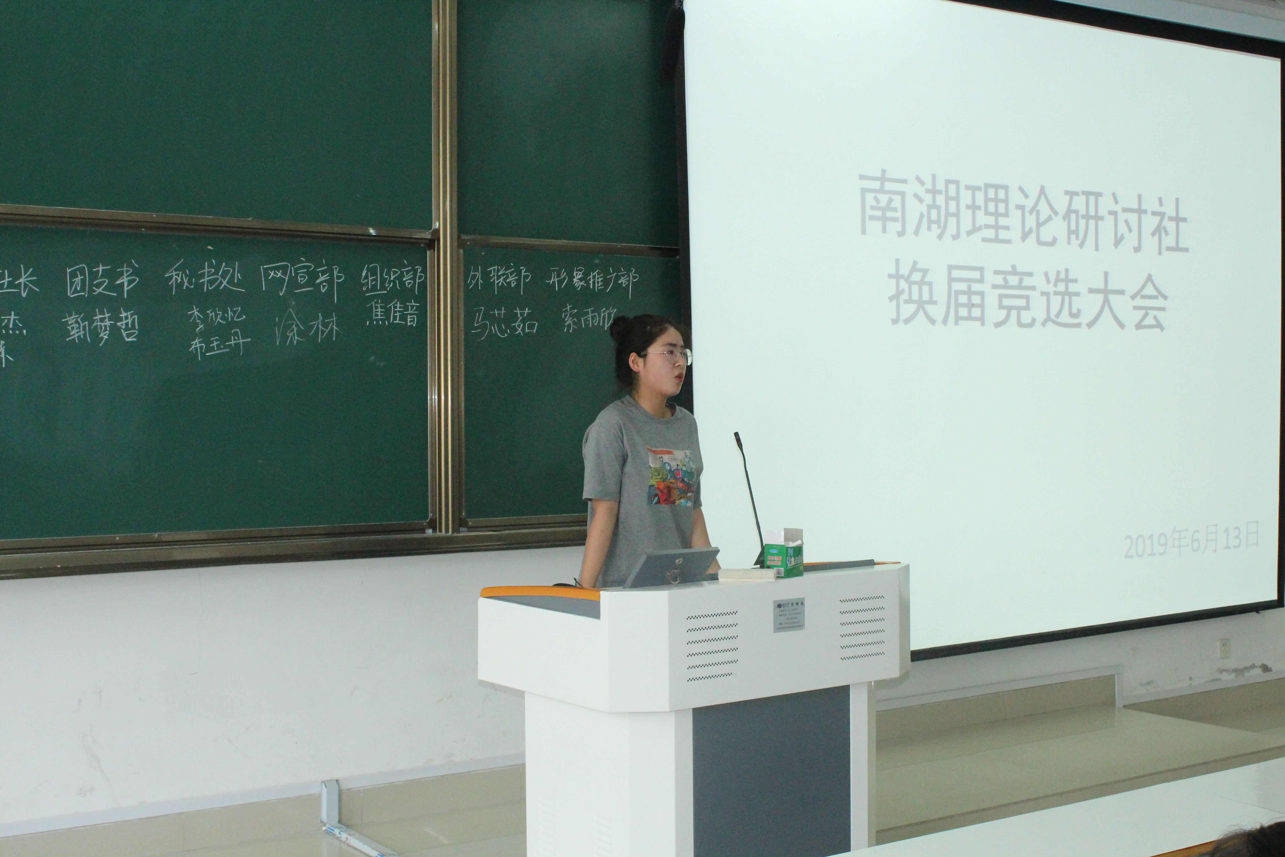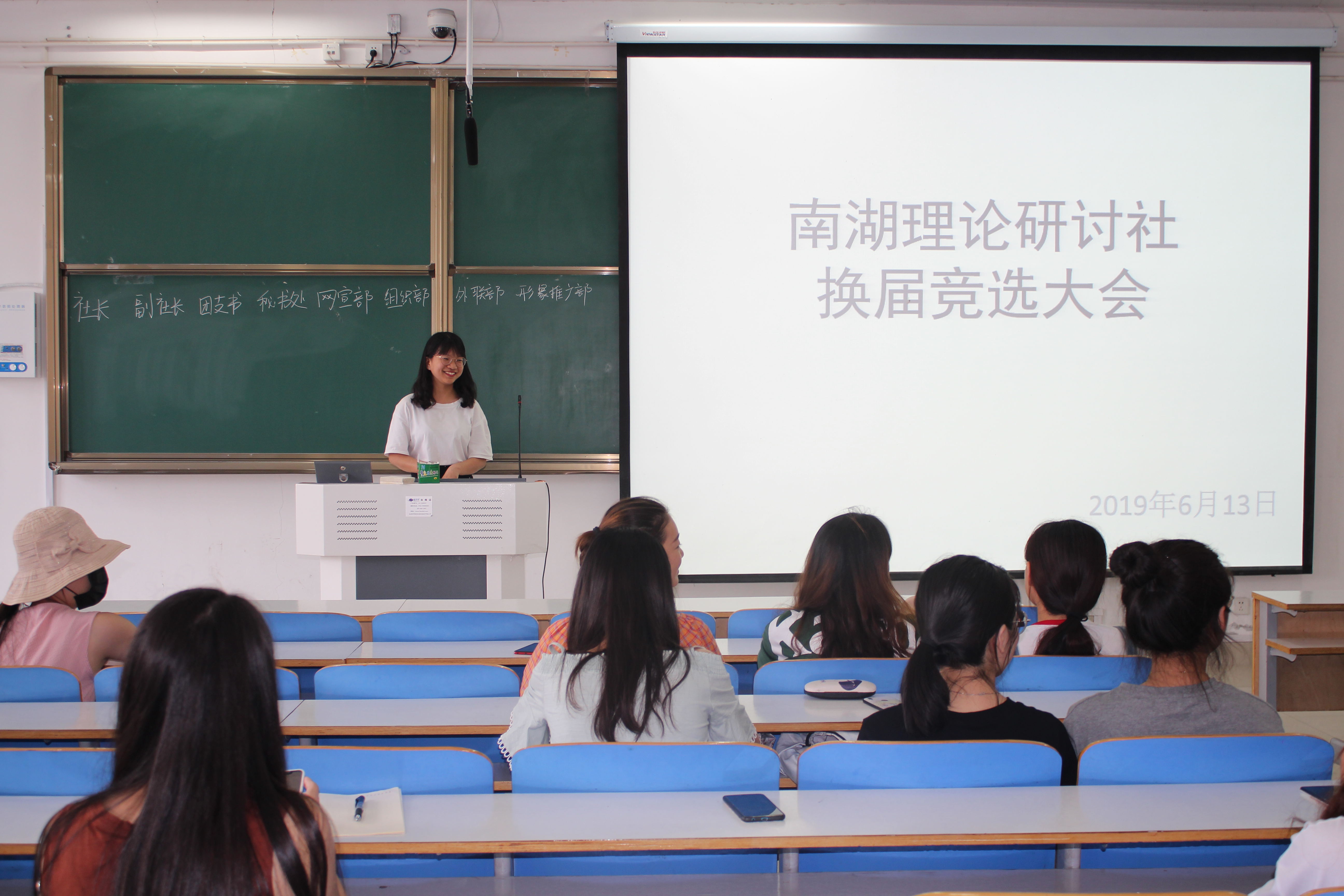 为增强社团活力,实现社团良好发展,6月13日中午,南湖理论研讨社于社科楼516教室举行2018-2019学年社团换届竞选大会。大会由社长张静主持。南湖理论研讨社分管主席王雅纯和主要成员共同参与。