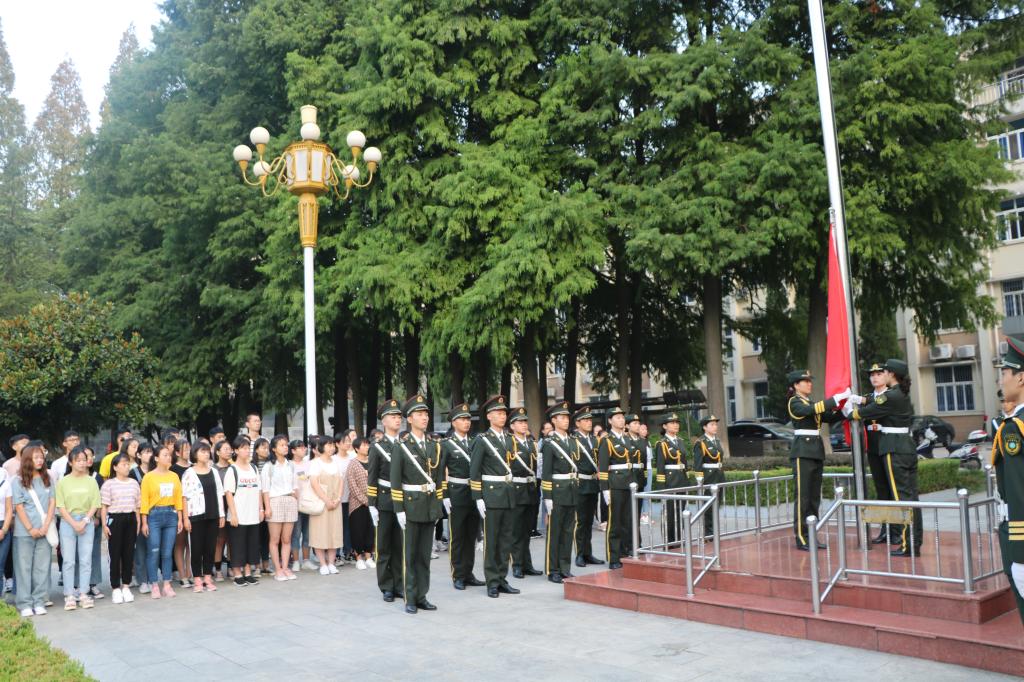 9月9日清晨,beat365亚洲版官网于行政楼前隆重举行升旗仪式暨国旗下讲话主题活动。我校国旗护卫队,beat365官网新生辅导员陶青青,2018级学生代表靳雨露、黄子晋以及2019级全体新生共同参加本次升旗仪式。仪式由国旗护卫队成员谢菲菲主持。