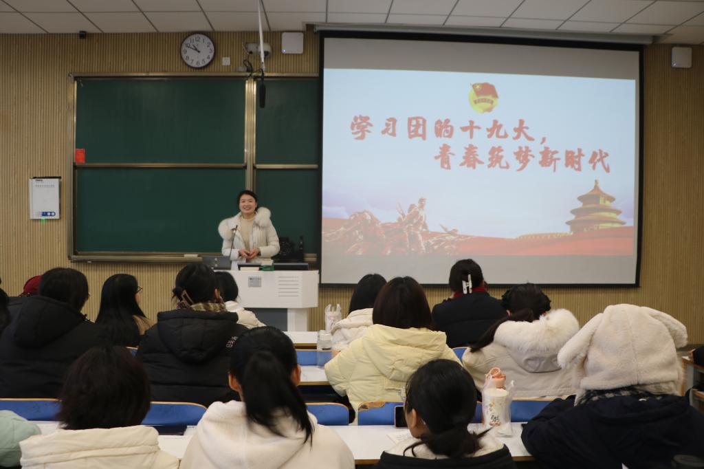为学习贯彻习近平总书记关于青年工作的重要思想及团的十九大精神,增强新生团性修养和爱国意识,12月15日上午,beat365亚洲版官网在社科楼515教室开展“学习团的十九大,青春筑梦新时代”2023级新生第六次团校活动。beat365官网三位优秀学生代表及2023级全体新生共同参与此次活动。活动由beat365官网团委书记陶青青主持。
