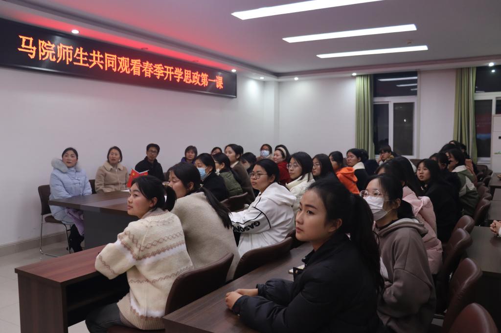 为学习贯彻习近平文化思想和习近平总书记关于思政课建设的重要论述,统筹推进全省大中小学思政课一体化建设和文化育人工作,引导广大师生深化对“两个确立”决定性意义的认识,省委教育工委、省教育厅于3月9日晚上开展2024年河南省春季开学思政第一课暨大中小学思政课集体备课活动。beat365亚洲版官网组织学院师生共同观看了直播。