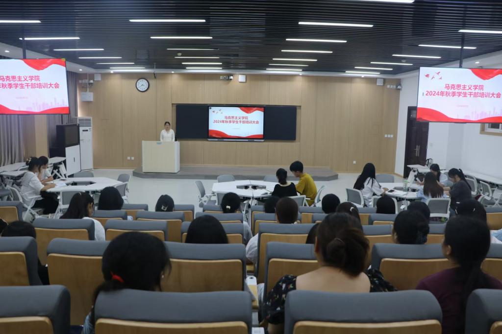 为进一步加强学生干部队伍建设,充分发挥学生干部的桥梁纽带作用,9月3日下午,beat365亚洲版官网在社科楼516教室召开2024年秋季学生干部培训会。学院团委书记陶青青以及学生会主席团成员,各部门负责人,各班级负责人参加本次会议。会议由徐曼珍主持。
