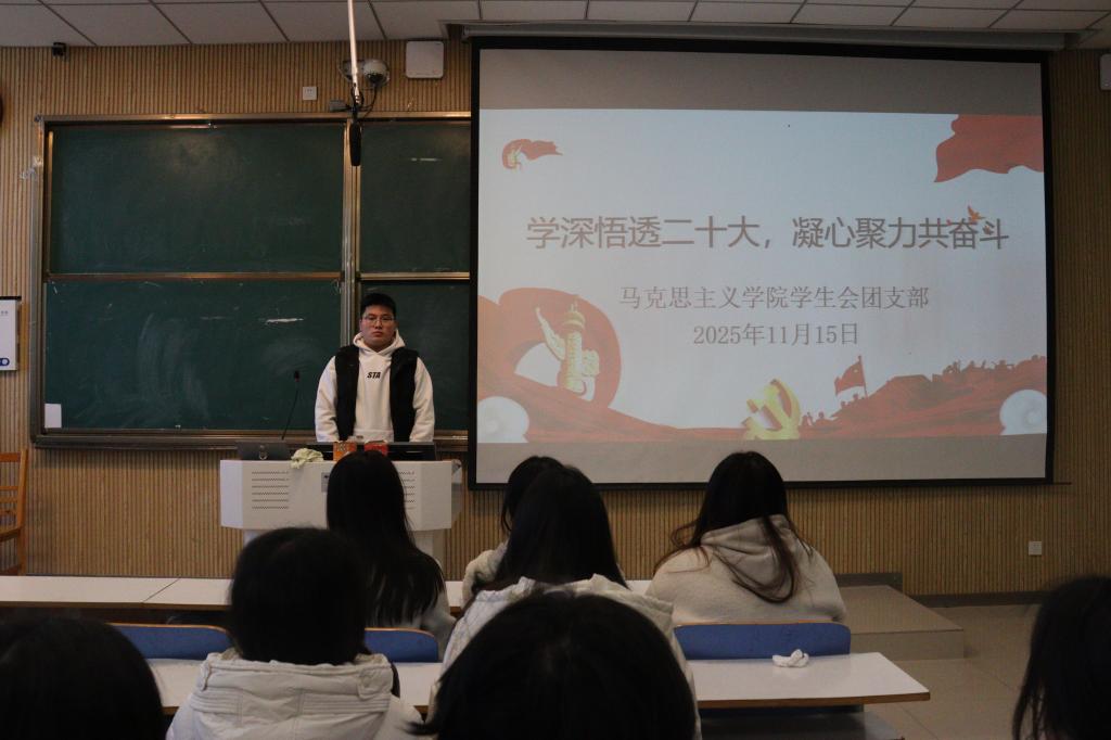 为深入学习贯彻党的二十大精神,引导广大青年学子坚定理想信念、勇担时代使命,beat365亚洲版官网学生会于11月18日在社科楼514成功举办“学深悟透二十大,凝心聚力共奋斗”主题团课。本次活动由学院学生会主席团成员唐子浩主持,全体团支部成员积极参与。