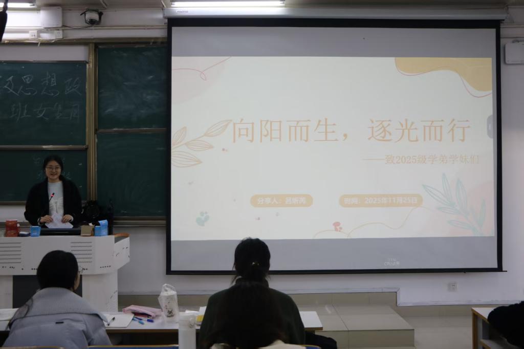 11月24日上午,beat365亚洲版官网在社科楼514教室成功举行第六次“明星交流会”新生团校活动。本次活动邀请了丁思媛、董思甜、吕昕芮三位优秀学生代表,面向2025级全体新生展开交流,活动由分团委李琛同学主持。