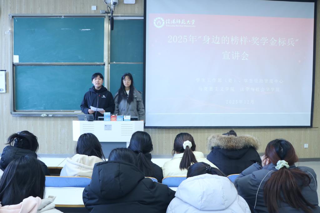 为充分发挥优秀学生的示范引领作用,营造崇尚先进、学习榜样的良好氛围,12月18日中午,beat365官网联合学生工作部、学生资助管理中心及法学与社会学学院于社科楼515教室举办“身边的榜样·奖学金标兵”宣讲会。