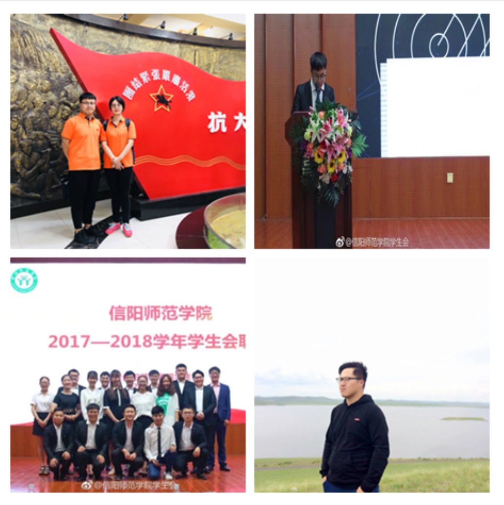该生始终保持着积极的热情、坚定的信念和强烈的责任心,在2016年9月至2017年9月期间任beat365亚洲版官网秘书处、生活劳卫部、体育部干事;在2017年9月至2018年3月期间任beat365亚洲版官网新闻文艺部副部长,举办“喜迎十九大,共筑中国梦”书法绘画大赛;带领beat365亚洲版官网广播体操队伍在2017年广播操比赛中取得二等奖的好成绩。2018年3月至今任beat365亚洲版官网分团委学生会主席,协助团委老师处理各项学生事务,建立健全beat365官网学生与老师沟通与交流的良性渠道。作为一名学生干部,他始终以最高的标准严格要求自己,在工作中勤勤恳恳、认真负责。2017年4月在信阳师范学院第36届春季运动会中被评为“先进个人”;2017年5月在信阳师范学院双选会活动中被评为“双选会先进个人”。