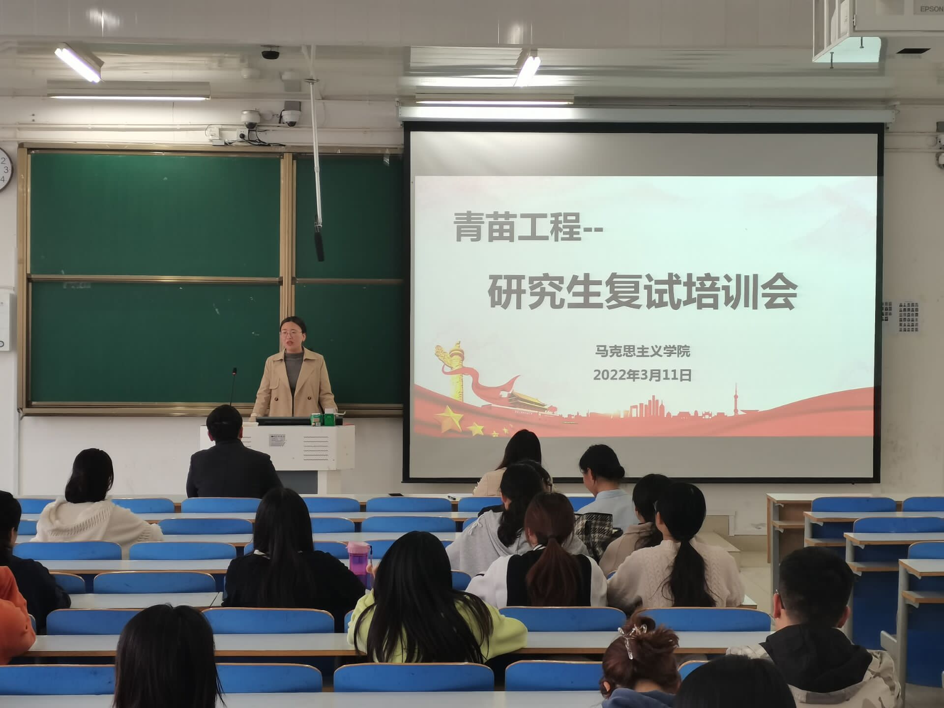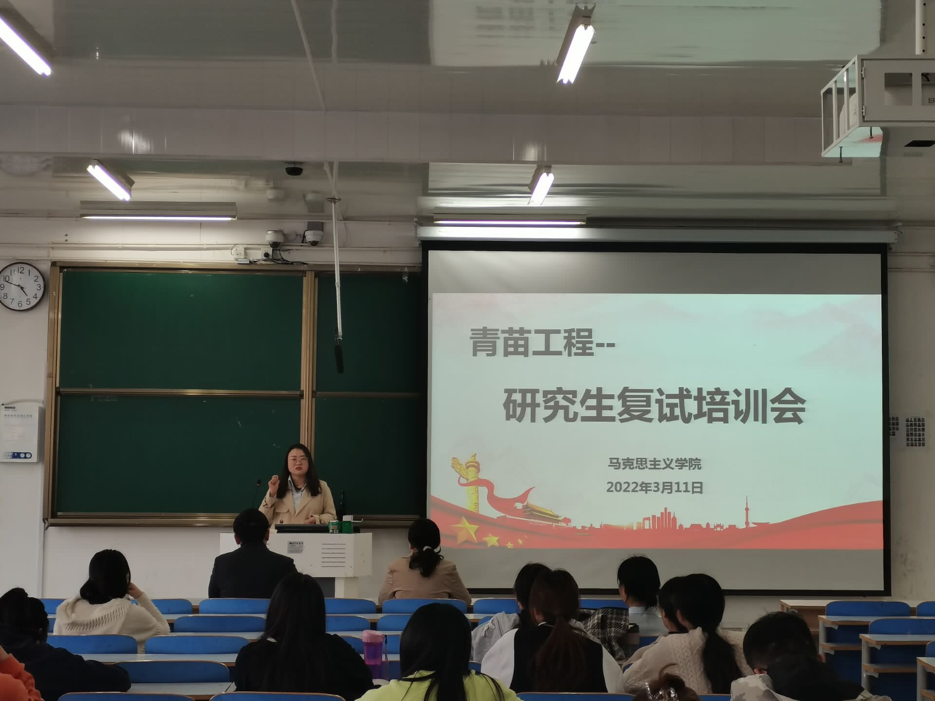 为帮助考研学子熟悉复试流程、复试难点。3月11日下午,考研服务社在社科楼516教室开展了beat365亚洲版官网“青苗工程”—研究生复试培训会议,beat365亚洲版官网全体考研学子参加此次会议,会议由社长于茹翠主持。