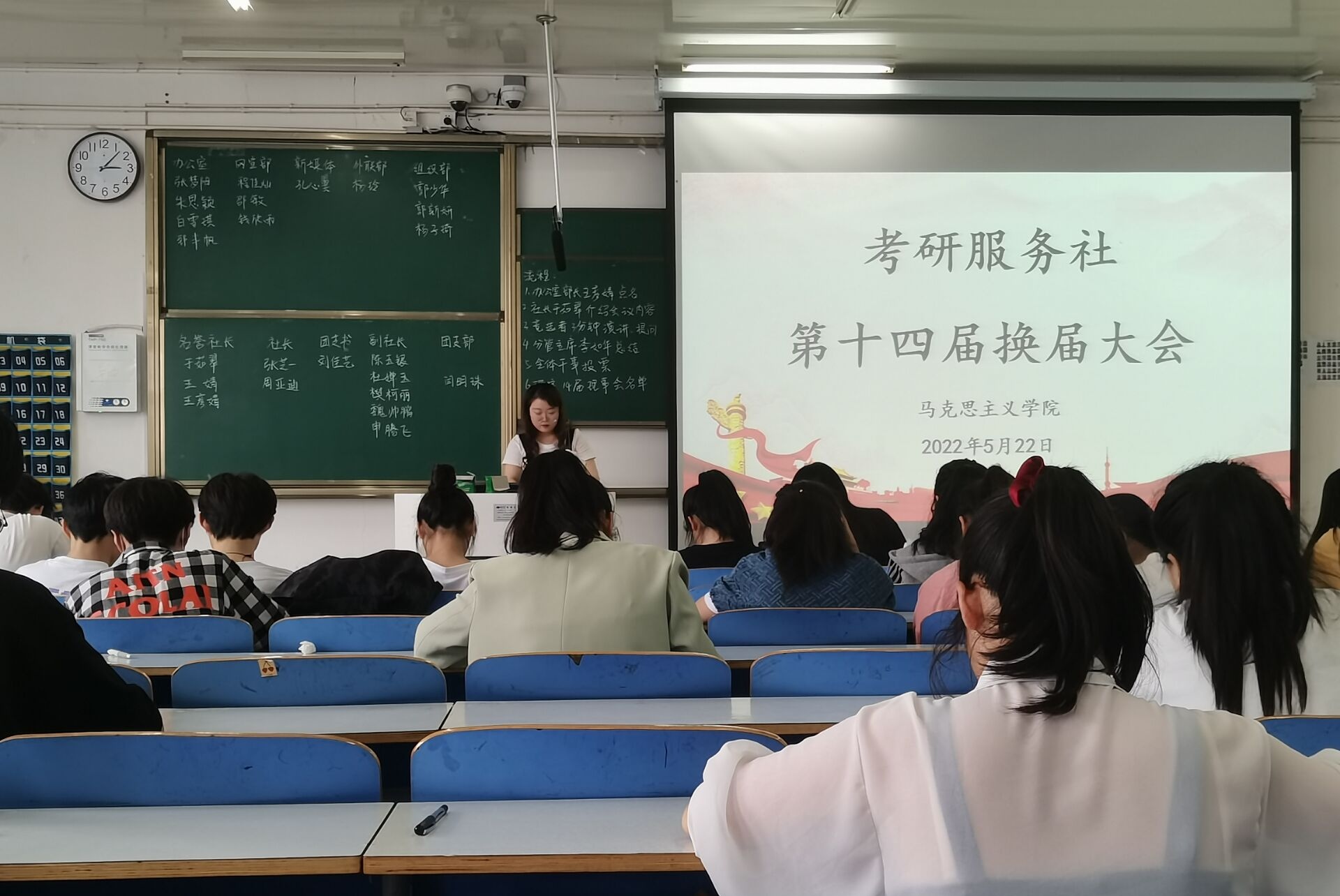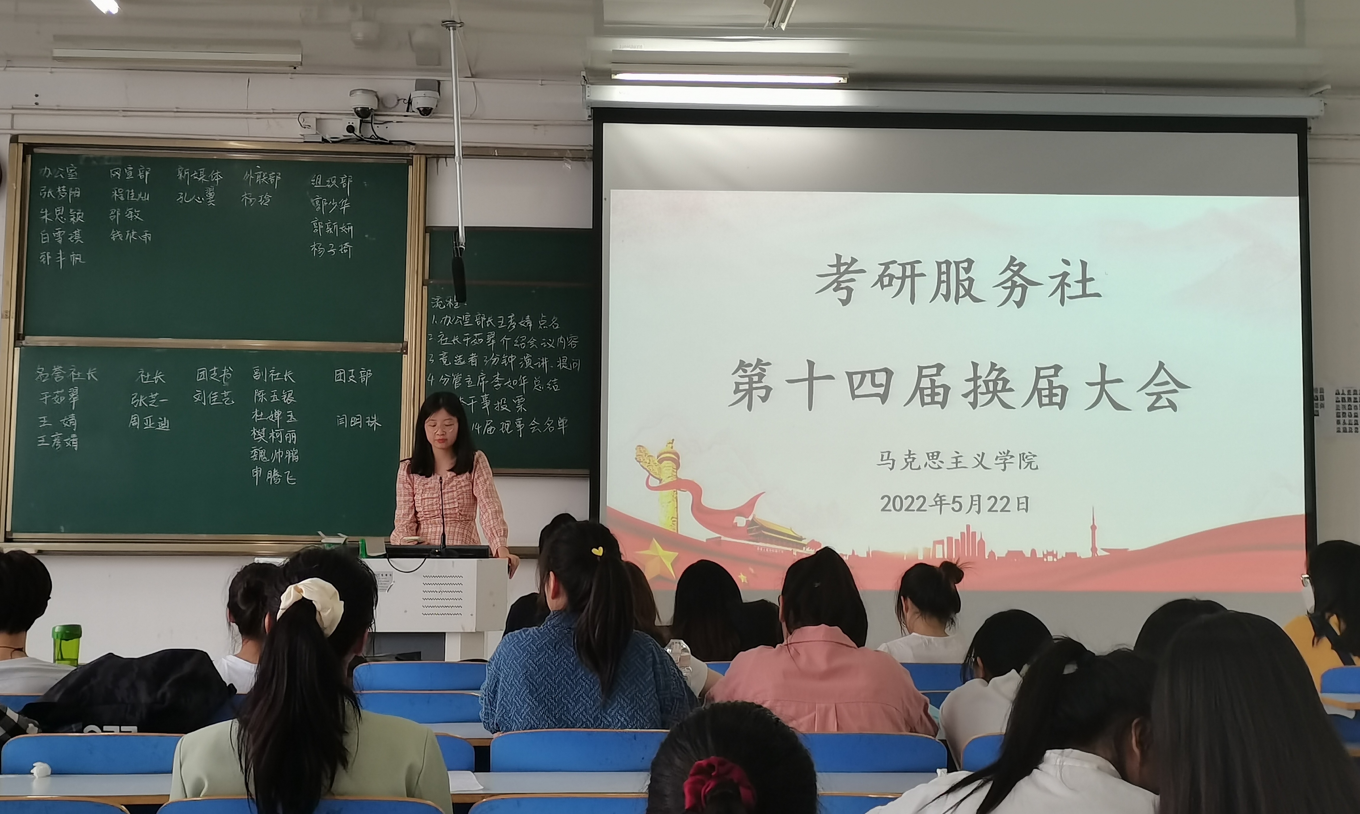 5月22日下午,信阳师范学院考研服务社换届大会在社科楼516教室召开。考研服务社社长、各部门负责人及全体社团干事参加此次换届大会。