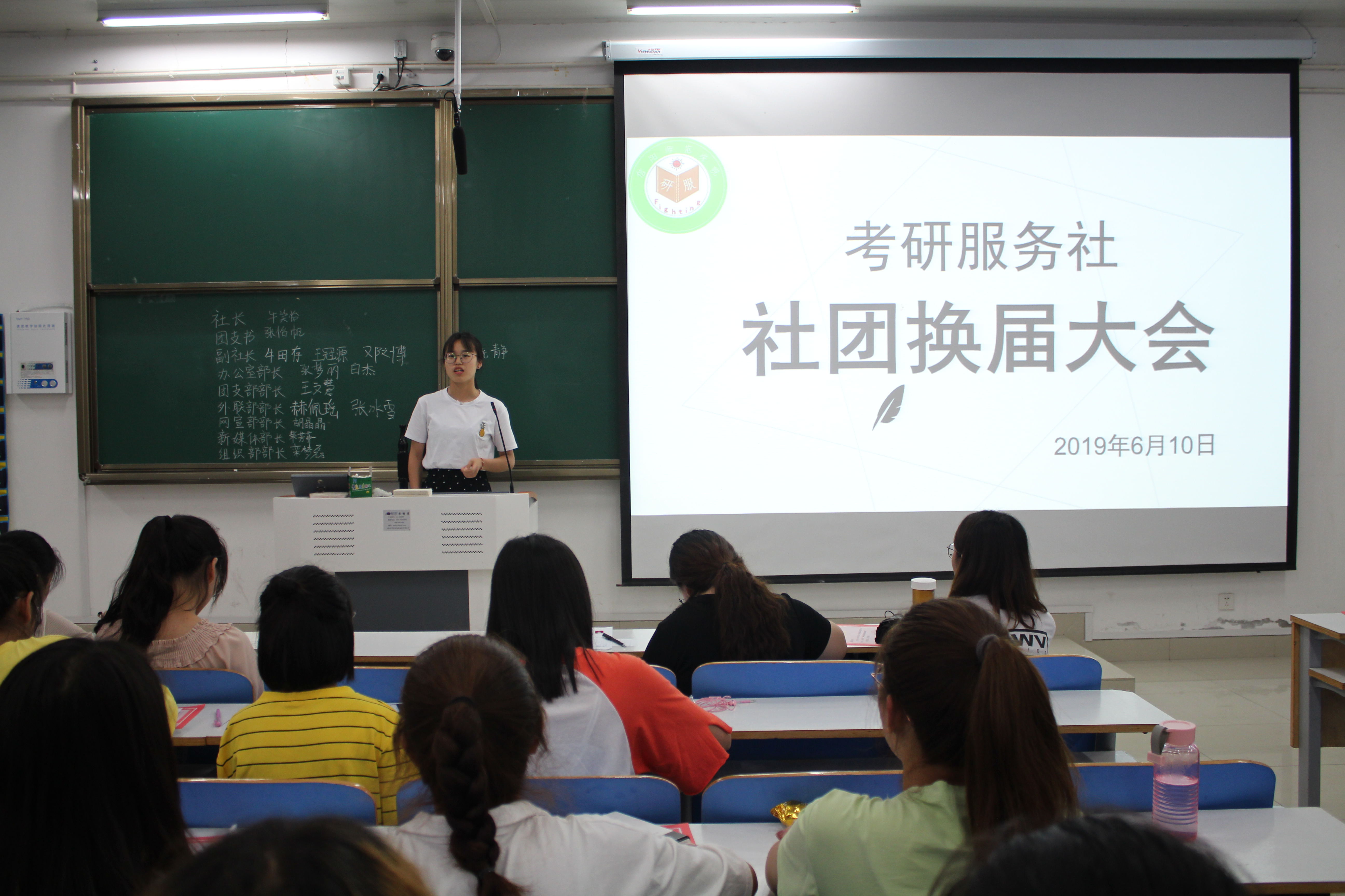 6月10日晚7点,考研服务社于社科楼516教室举行2018-2019学年社团换届竞选大会。大会由团支书毛羽主持,考研服务社主要成员共同参与。