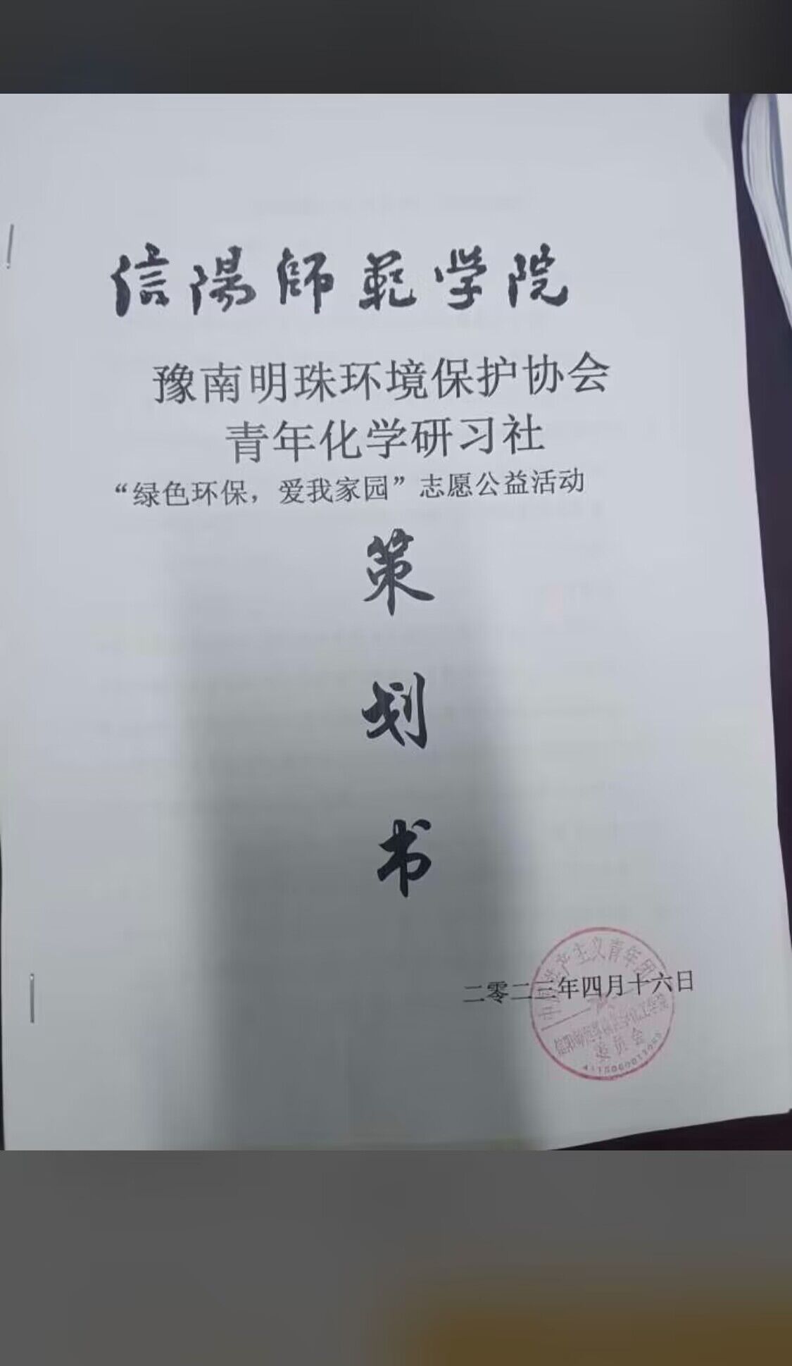 绿水青山就是金山银山。绿色是不变的话题,和谐是永恒的追求,为了深化学生对绿色发展的新发展理念的认识和对环境的爱护意识,以及增强大家绿化环境保护环境的责任感,践行生态文明思想,4月23日——4月29日,豫南明珠环境保护协会与青年化学研习社联合举办“绿色环保爱我家园”志愿公益活动。