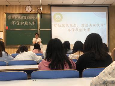 本次活动要求每组参赛选手在规定的十个环保知识方面选择一个选题,进行PPT制作,通过演讲的形式向大家传达环保知识及理念。活动伊始,社长路艳欣进行发言,阐述本次活动的主题和目的,活动正式开始。接着,选手依次上台进行演讲,评委们秉持公平、公正、公开的原则对演讲选手的综合表现进行打分,根据排名确定获奖名单。在本次大赛中,付海迪同学以“垃圾分类,保护环境”为主题,演讲内容丰富具有深意,PPT制作精美,仪容仪表得体,演讲过程口齿清晰流利,表现突出,获得本次环保技能大赛的一等奖。最后,社长路艳欣呼吁大家认真践行绿色发展的新发展理念,低碳生活,为中国生态文明建设贡献自己的力量,活动取得圆满成功。