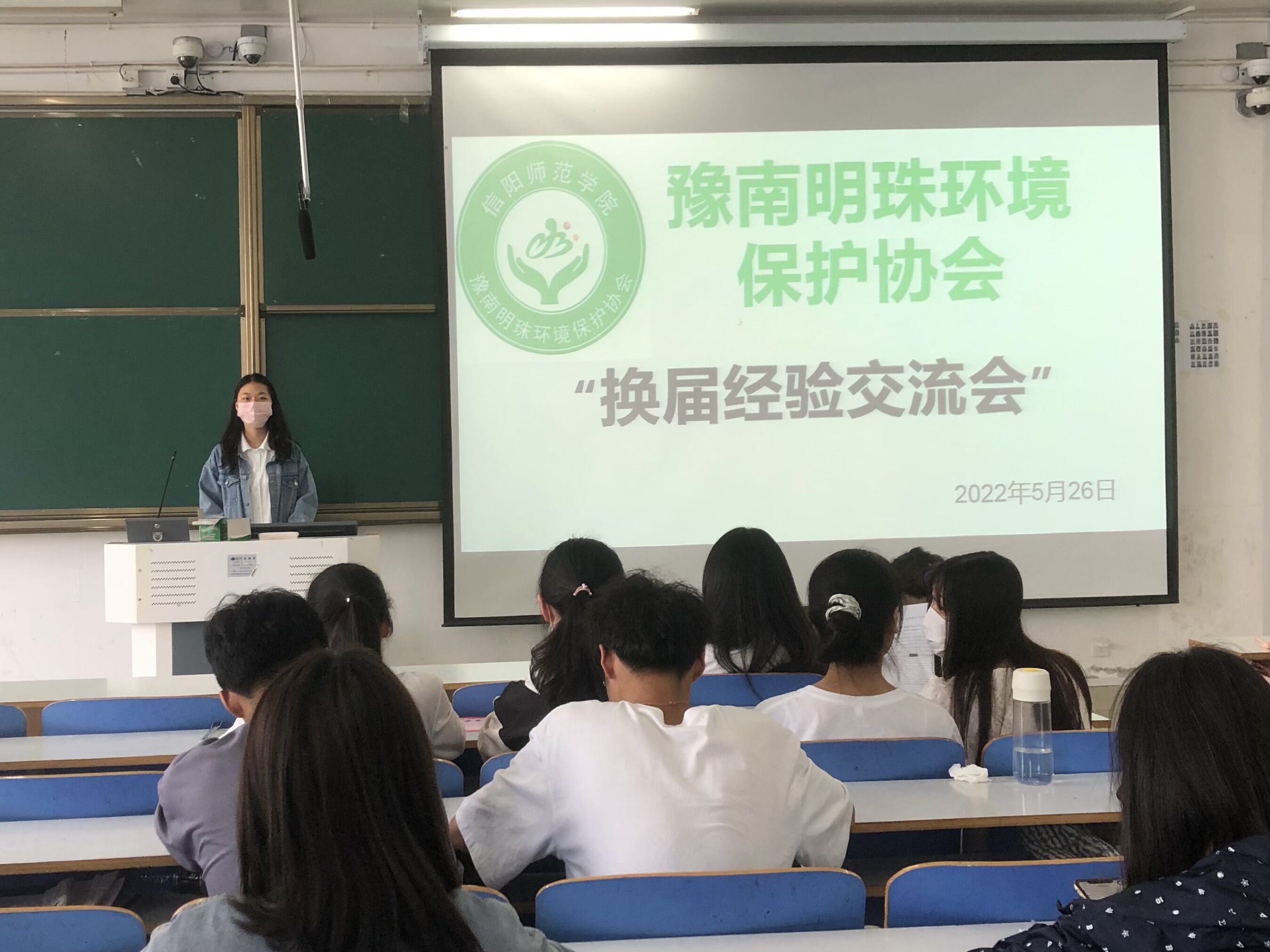 为使豫南明珠环境保护协会新一届部门负责人熟悉各部门工作,更好吸取上一届部门负责人工作经验,进而推进豫南明珠环境保护协会进一步的发展,5月26日,豫南明珠环境保护协会于社科楼516教室举办“换届经验交流会”,本次交流会由名誉社长夏岩主持,各部门部长参加,交流会取得圆满成功。