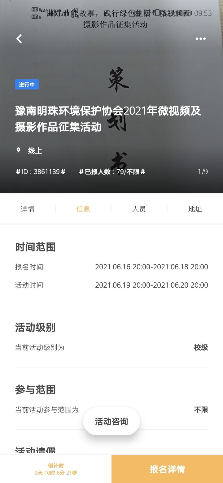 为深入贯彻新发展理念,引导我校师生积极参与节能减排工作,6月18日至6月19日,豫南明珠环境保护协会“讲好节能故事,践行绿色生活”微视频及摄影作品征集活动顺利举行。本次活动在线上进行,并面向全校师生展开。