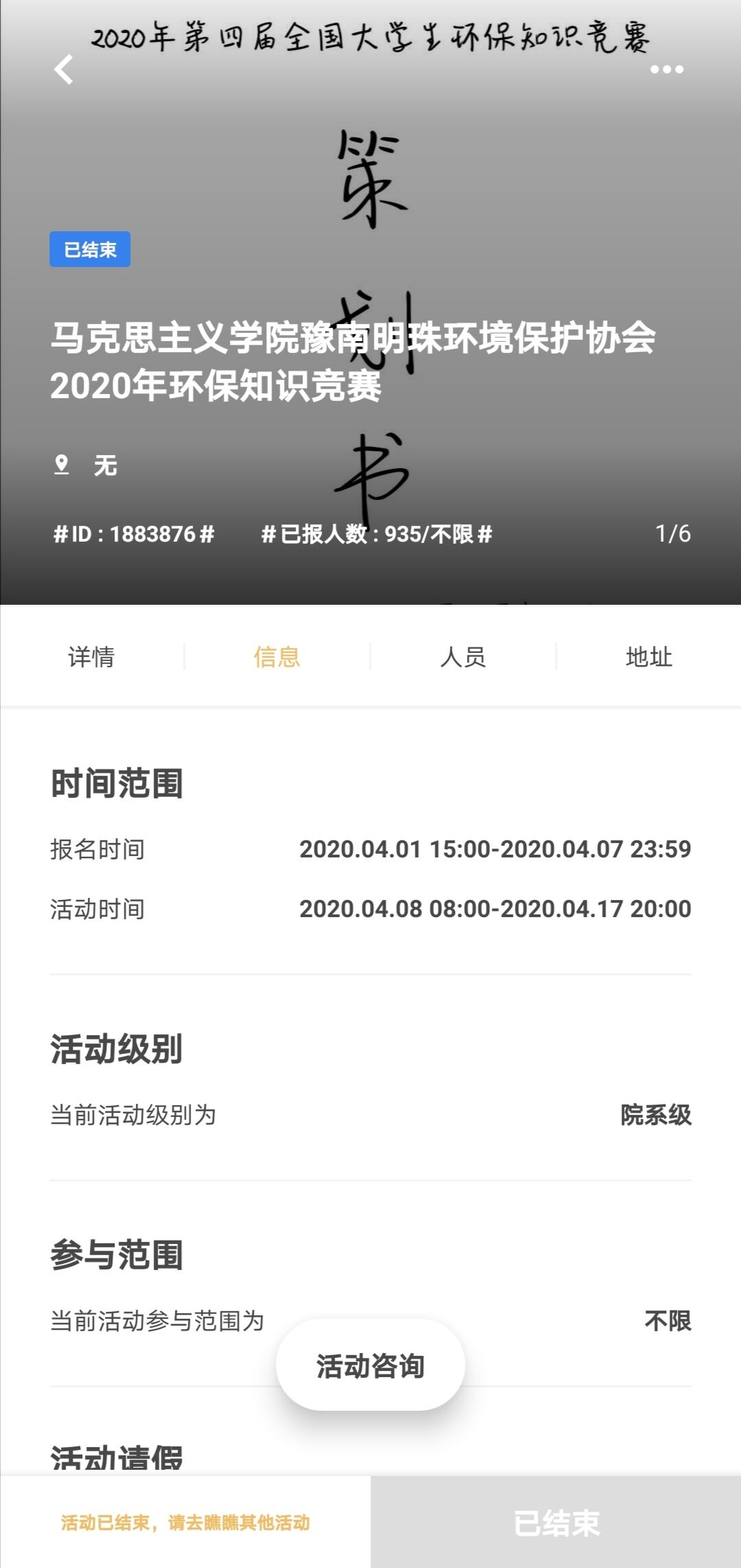 为提高大学生环保意识,增加大学生环保知识,3月28日—6月30日,由豫南明珠保环境保护协会主办、beat365亚洲版官网分团委和信阳师范学院后勤管理处承办的2020年第四届全国大学生环保知识竞赛于线上成功举行。