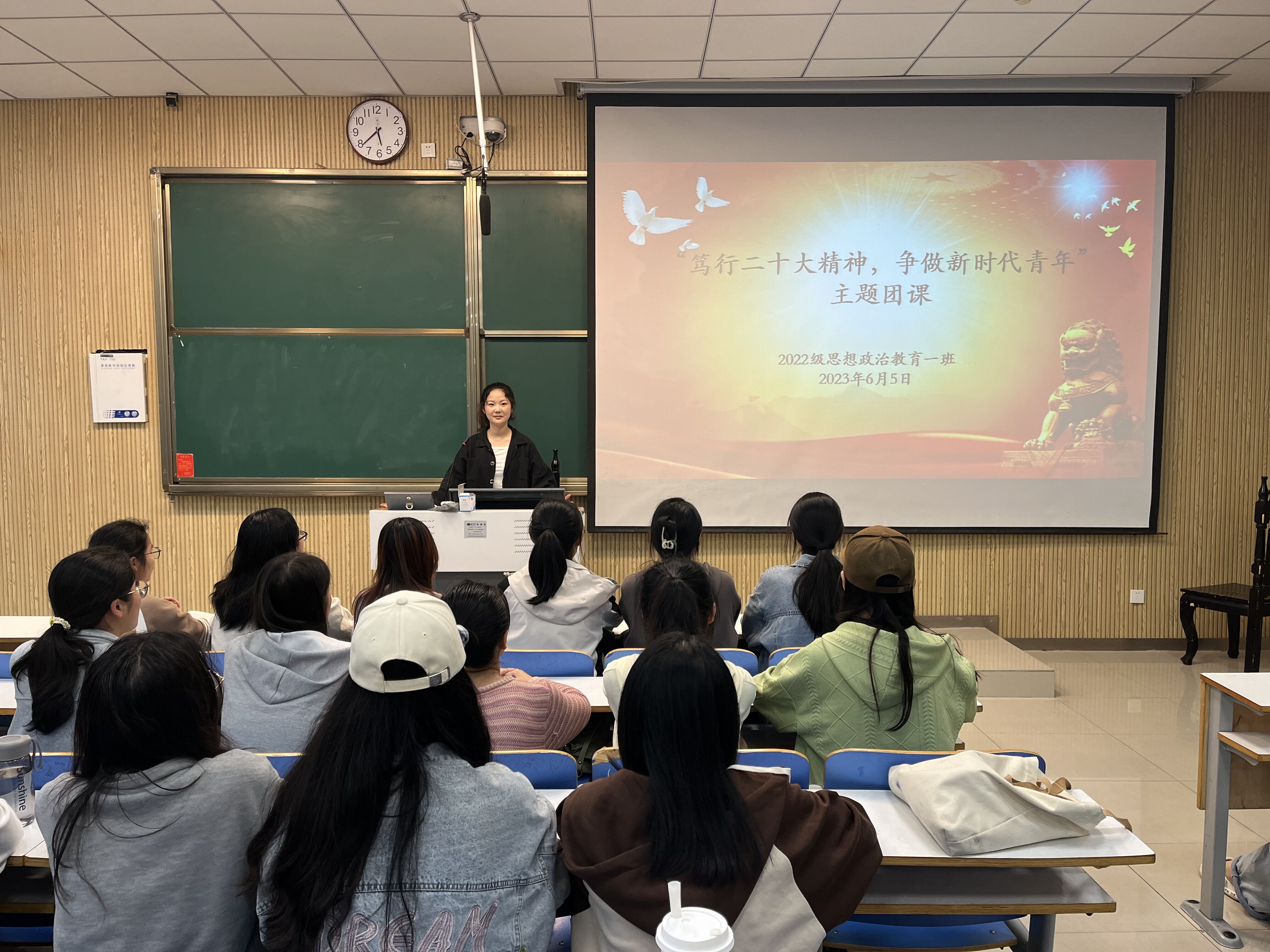 6月5日下午,beat365亚洲版官网2022级思想政治教育一班在社科楼515教室召开“笃行二十大,争做新青年”主题团课,beat365官网2022级思想政治教育一班全体同学共同参与本次团课,团课由团支书李佳茹主持。