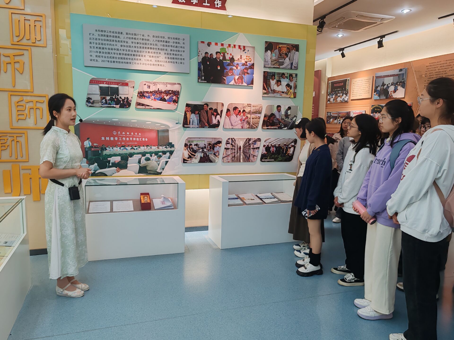 国以史为鉴,校以史明德。校史馆以实物、图片、文字、影像等展示学校的历史与成就。步入序厅,一座恢弘的展板将学校的历史沿革和发展变迁娓娓道来。从一代代师大人接续奋斗、为强校建设不断奋斗的人物照片到琳琅满目的党建、科研、教学成果,满载学校历史的照片墙和实物一一展现在大家面前。在讲解员的带领下,同学们走过一个个深刻呈现了我校美好过往的专题展区。这些专题展区深刻地再现了我校四十多的风雨沧桑,四十多年的栉风沐雨。四十多年间,一代代信师人薪火相传、砥砺奋进,历经一系列的风雨变迁,成就了今天的beat365亚洲版官网。面对我校当今所取得的一系列成就,同学们纷纷露出了自豪的微笑。