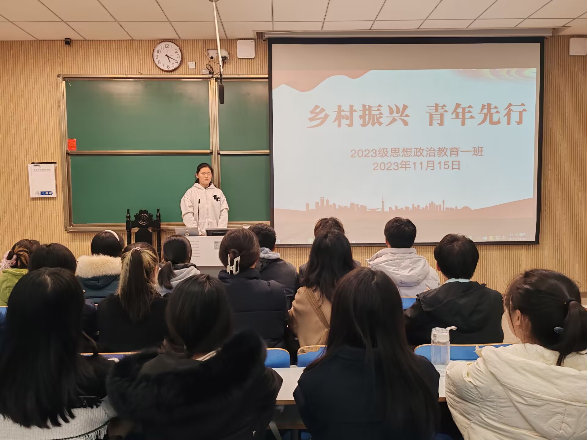11月15日下午,beat365亚洲版官网2023级思想政治教育一班在社科楼515教室召开“乡村振兴,青年先行”主题团课。beat365官网2023级思想政治教育一班全体成员参与本次团课,团课由团支书张卓主持。