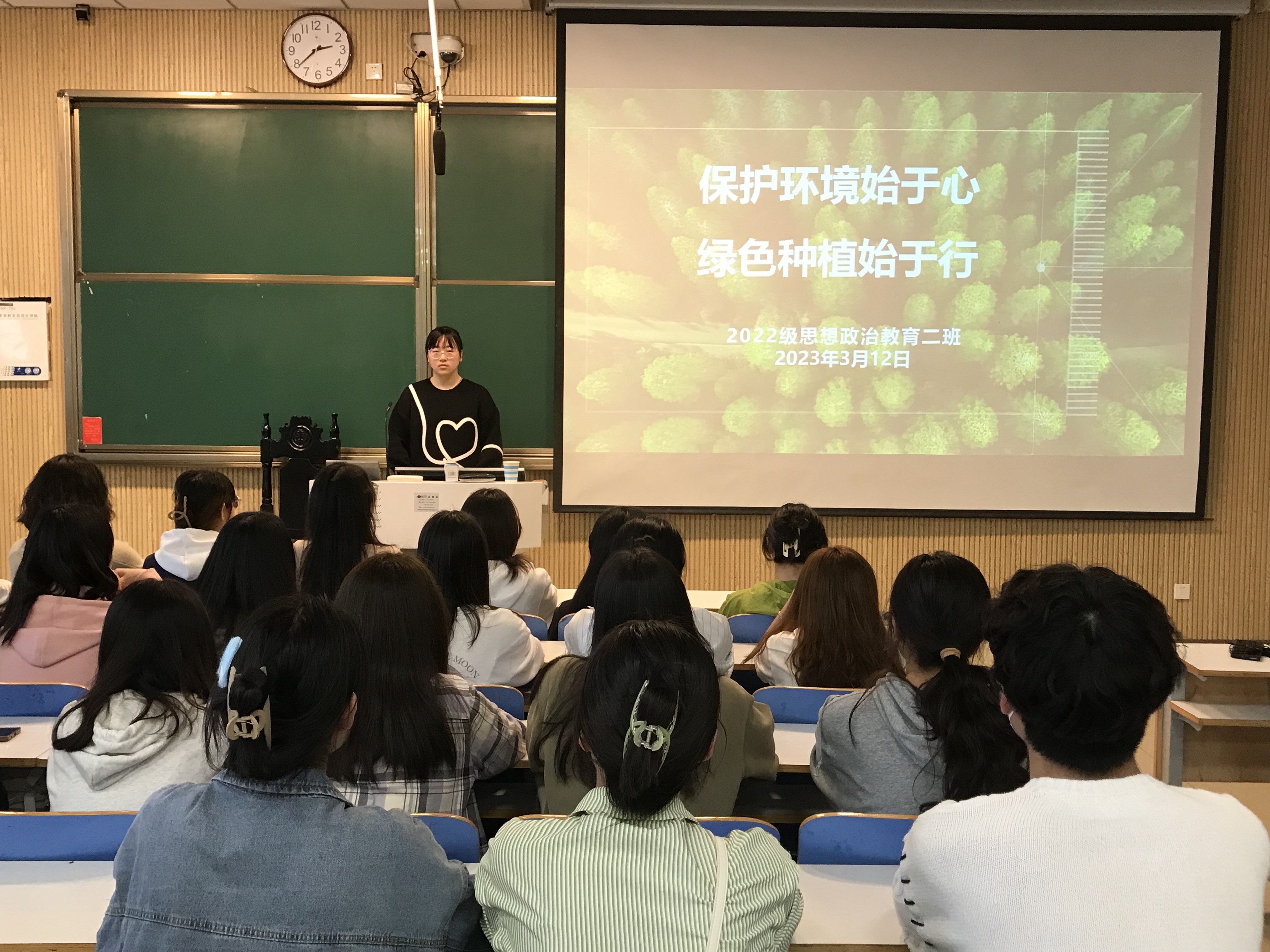 3月12日下午,beat365亚洲版官网2022级思想政治教育二班在社科楼515教室召开“保护环境始于心 绿色种植始于行”主题班会。2022级思想政治教育二班全体同学共同参加会议。班会由班长李佳音主持。