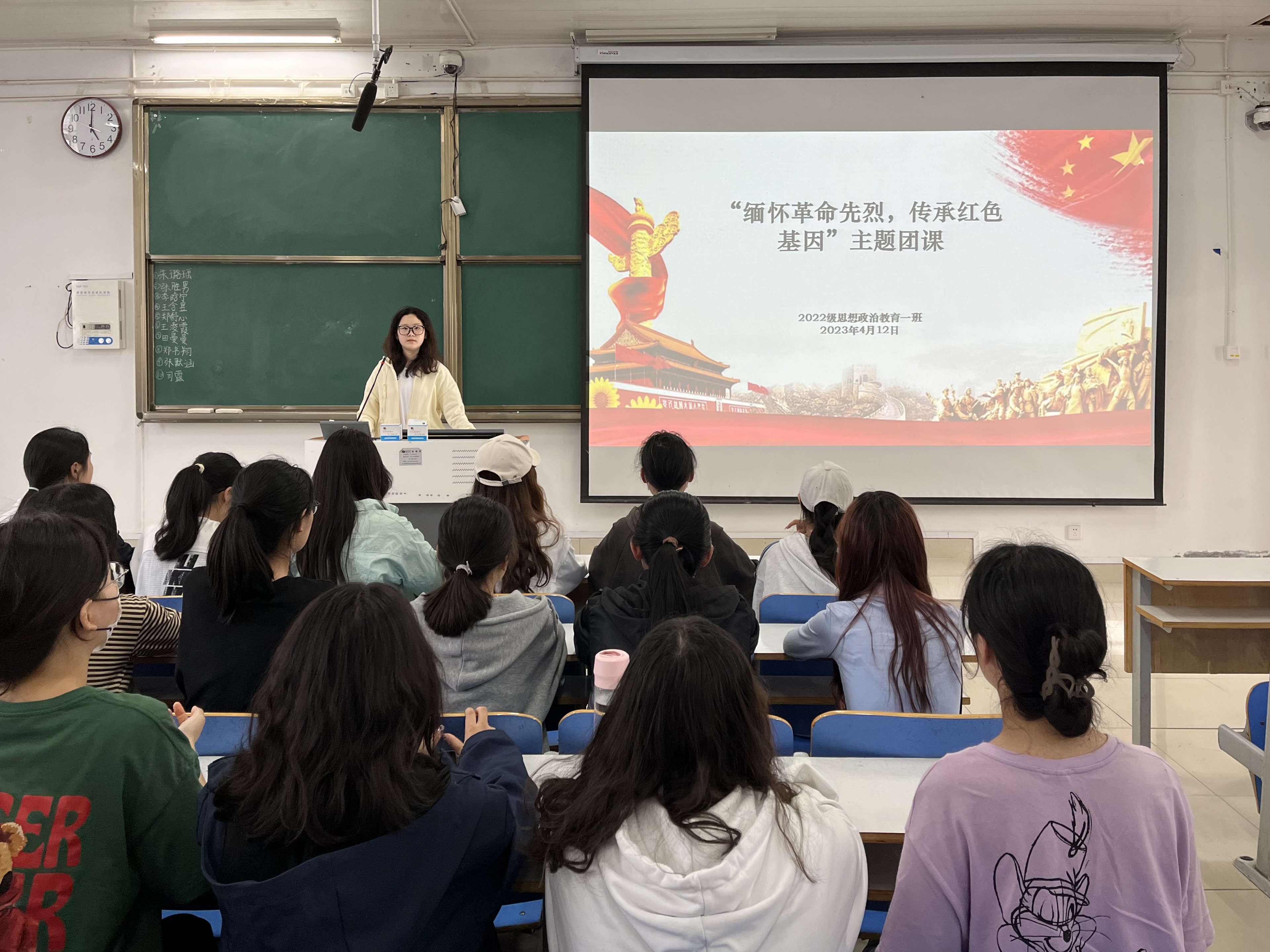 为弘扬爱国主义精神,缅怀革命先烈,4月12日下午,beat365亚洲版官网2022级思想政治教育一班在社科楼514教室召开“缅怀革命先烈,传承红色基因”主题团课。2022级思想政治教育一班全体同学共同参与本次团课,团课由团支书李佳茹主持。