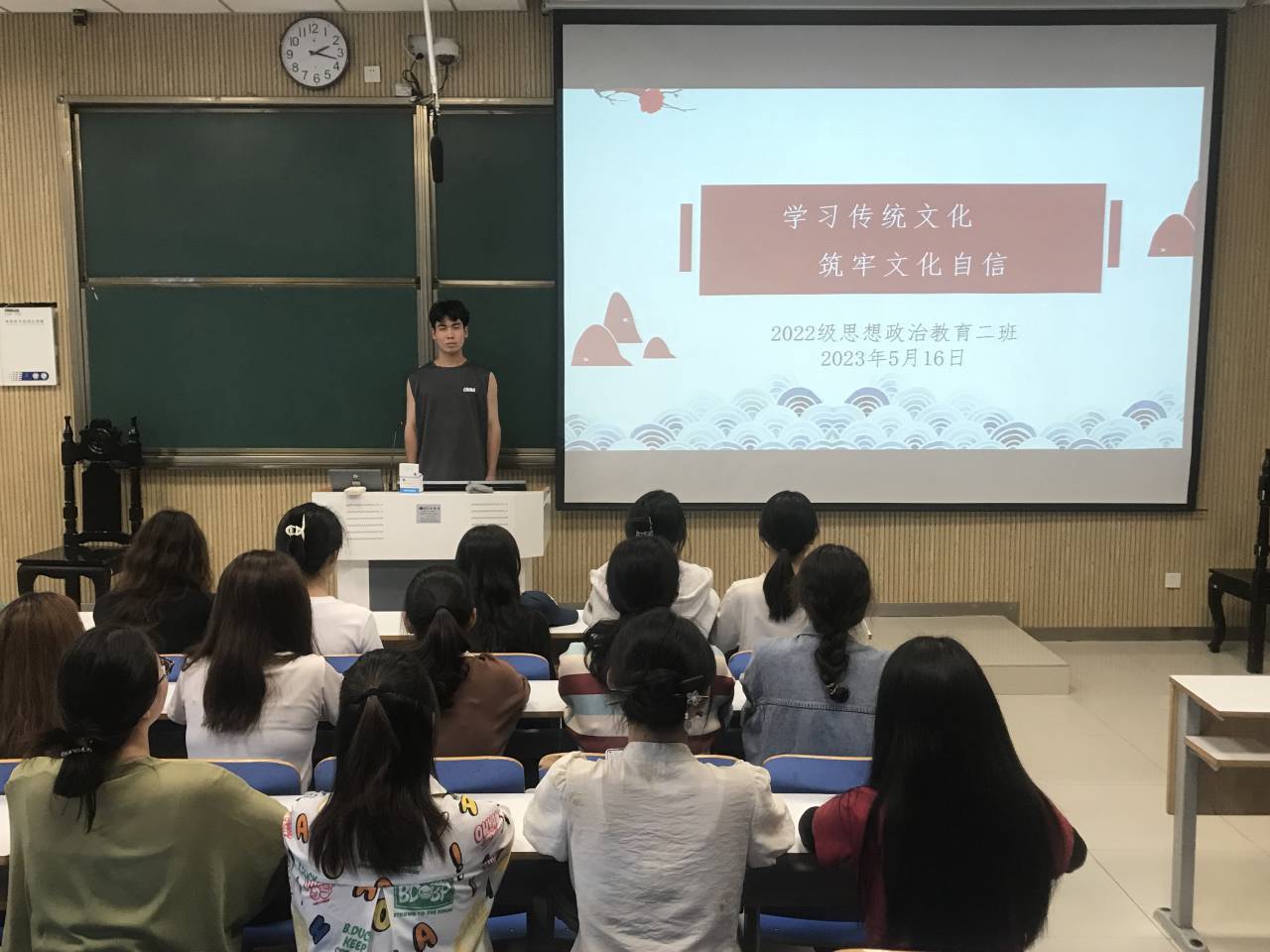 为深入贯彻落实党的二十大精神,进一步传承和弘扬中华优秀传统文化,5月16日下午,beat365亚洲版官网2022级思想政治教育二班在社科楼515教室召开“学习传统文化,筑牢文化自信”主题班会,2022级思想政治教育二班全体同学共同参加。班会由副班长柴智森主持。