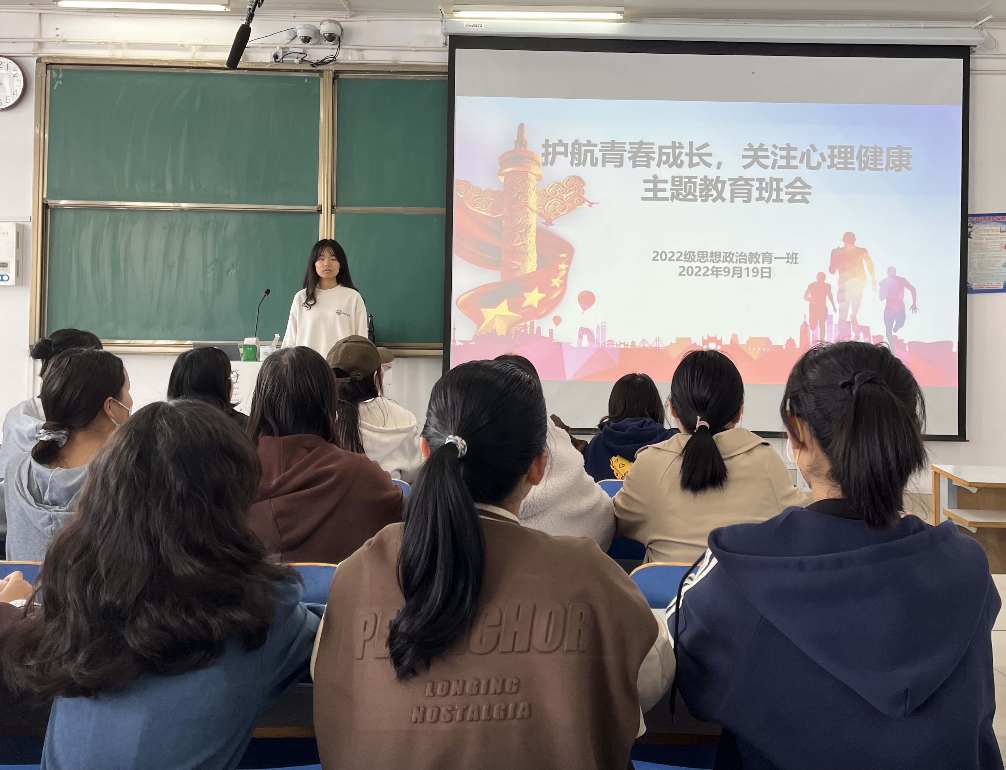 为普及心理健康知识,提升同学们的心理素质,10月24日下午,beat365亚洲版官网2022级思想政治教育一班在社科楼514教室召开“护航青春成长,关注心理健康”主题班会。2022级思想政治教育一班全体同学参与本次班会,班会由劳动委员孙怡果主持。