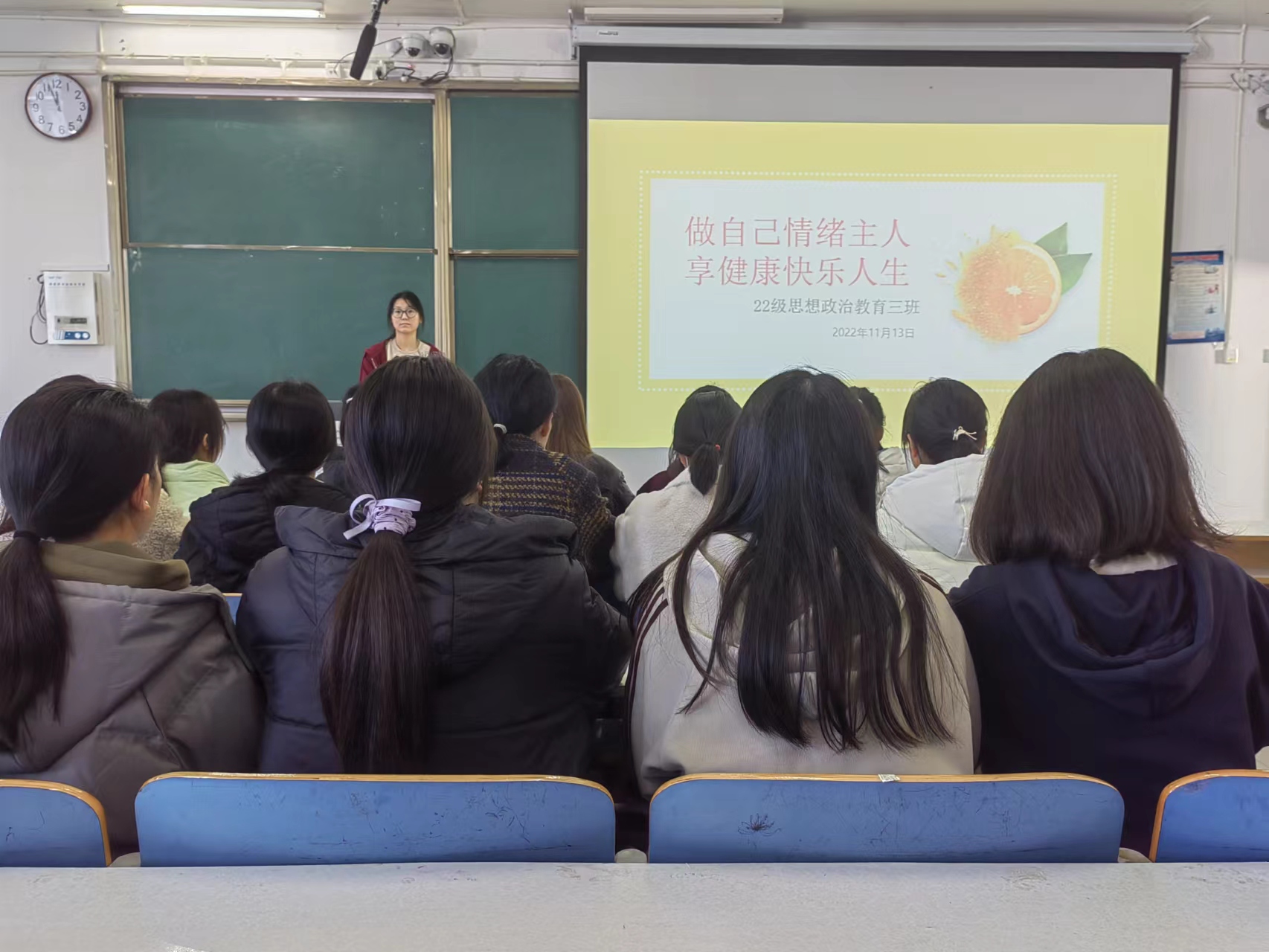 为进一步提高大学生心理素质,促进身心健康,11月13日上午,beat365亚洲版官网2022级思想政治教育三班在社科楼514教室召开“做自己情绪主人,享健康快乐人生”主题班会。beat365官网2022级思想政治教育三班全体成员共同参加班会,班会由心理委员张韶涵主持。