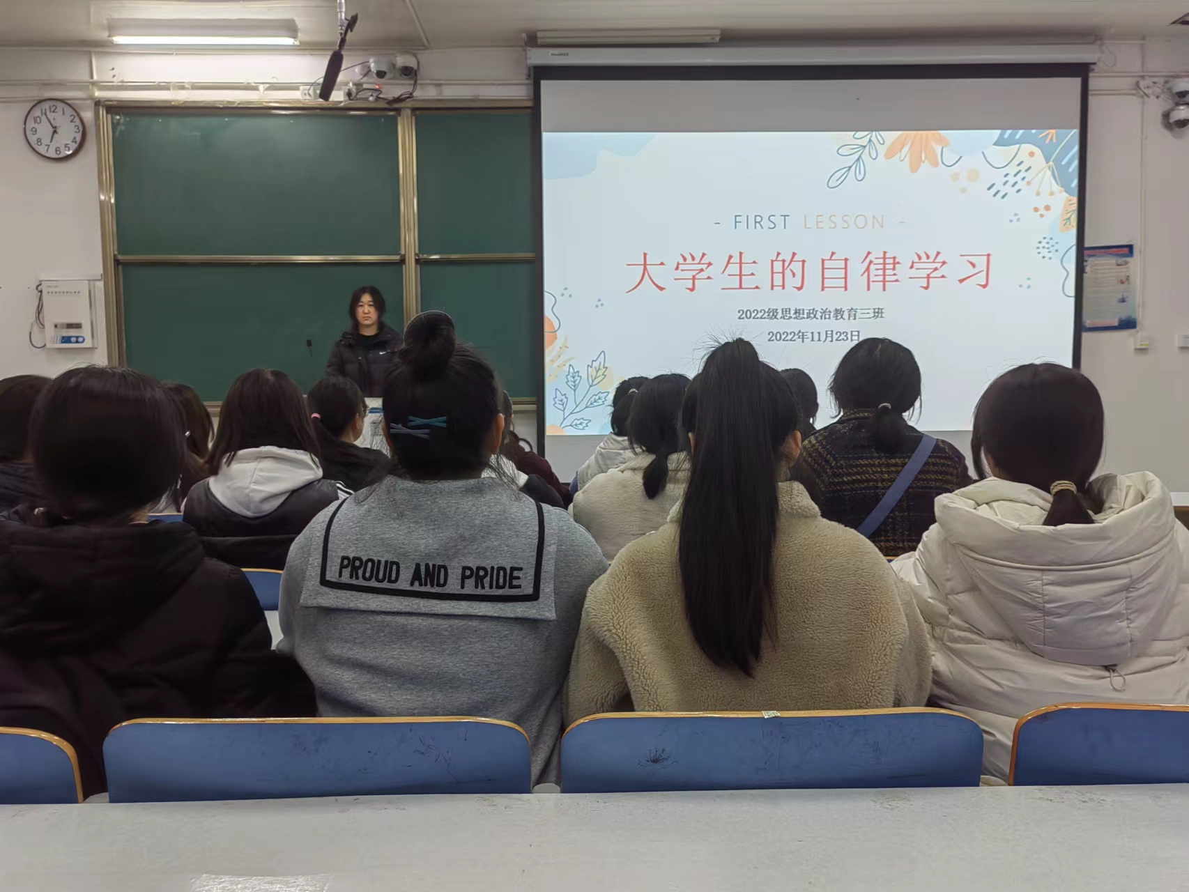 自律学习,不负韶华。为进一步增强大学生学习主动性和积极性,11月23日下午,beat365亚洲版官网2022级思想政治教育三班在社科楼515教室召开大学生的自律学习主题班会。beat365官网2022级思想政治教育三班全体成员共同参与此次班会,班会由学习委员朱欣燕主持。