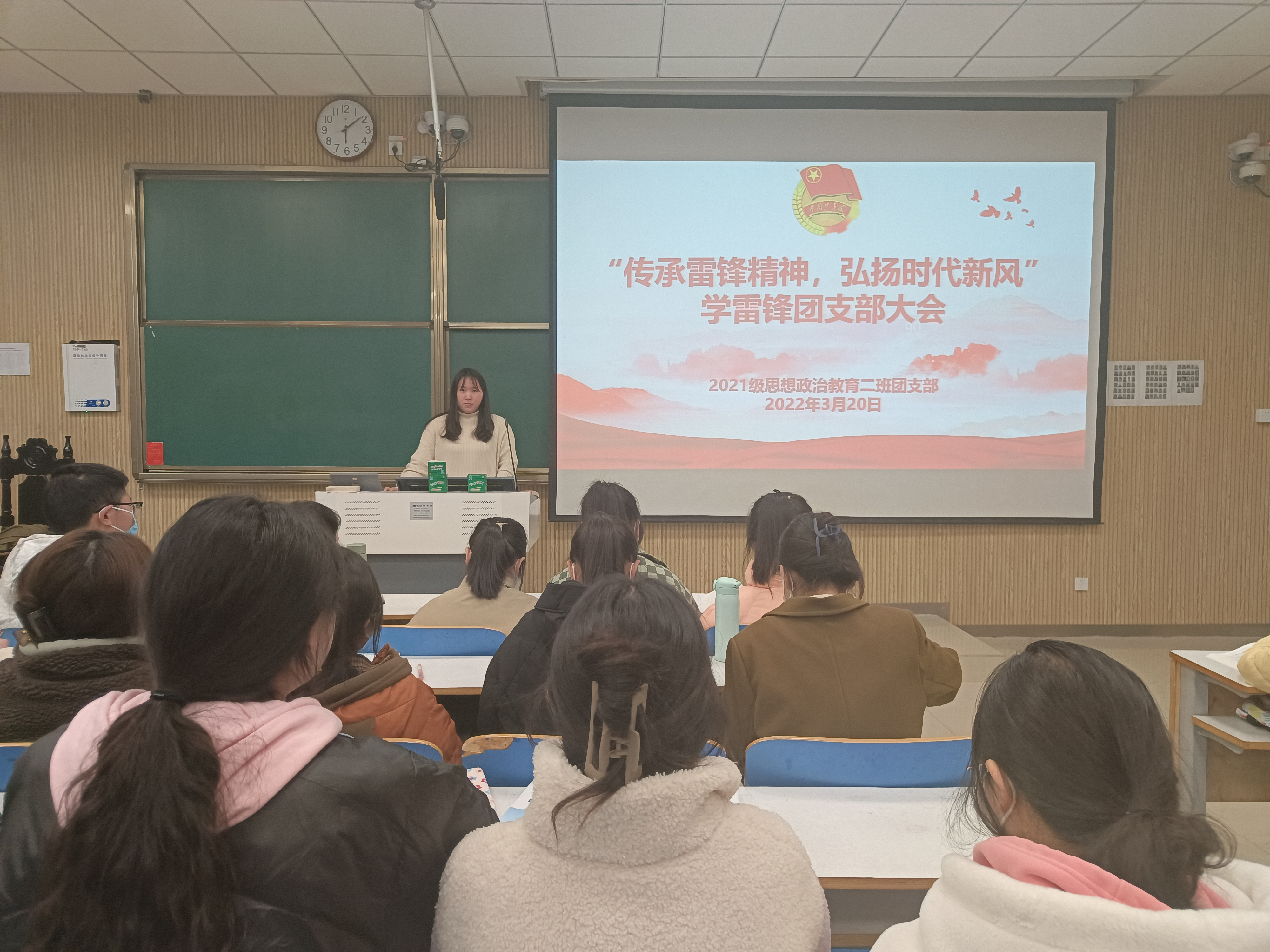 3月20日下午,beat365亚洲版官网2021级思想政治教育二班在社科楼515教室召开“传承雷锋精神,弘扬时代新风”学习雷锋团支部大会。2021级思想政治教育二班全体团员参加此次团支部大会,团支部大会由团支书王婧欣主持。