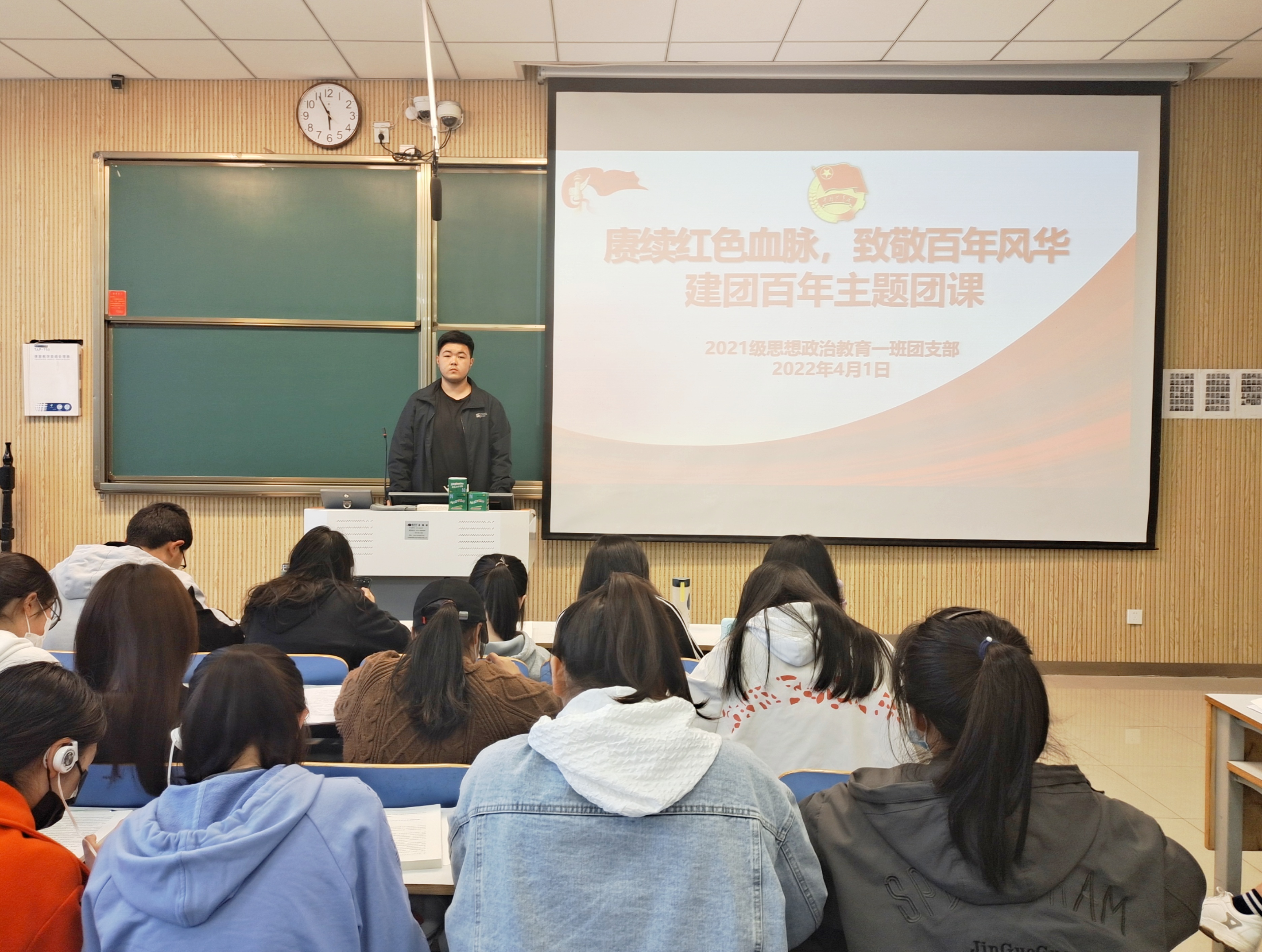 4月1日下午,beat365亚洲版官网2021级思想政治教育一班在社科楼515召开“赓续红色血脉,致敬百年风华”建团百年主题团课。2021级思想政治教育一班全体团员共同参加了本次团课。团课由团支书戴翰林主持。