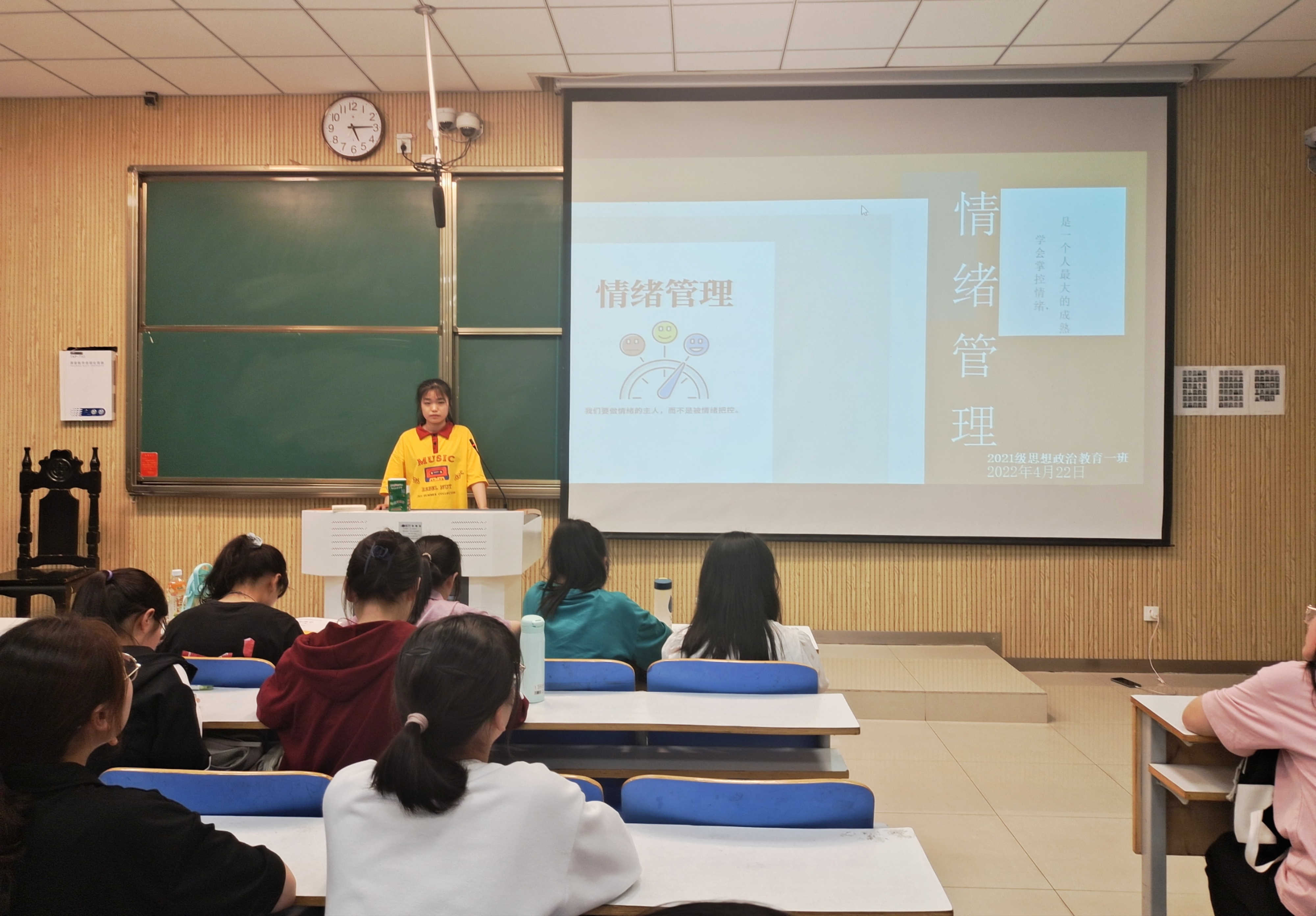 4月22日下午,beat365亚洲版官网2021级思想政治教育一班在社科楼515教室召开“情绪管理”主题班会。2021级思想政治教育一班全体成员参加了本次班会。班会由心理委员黄小妍主持。