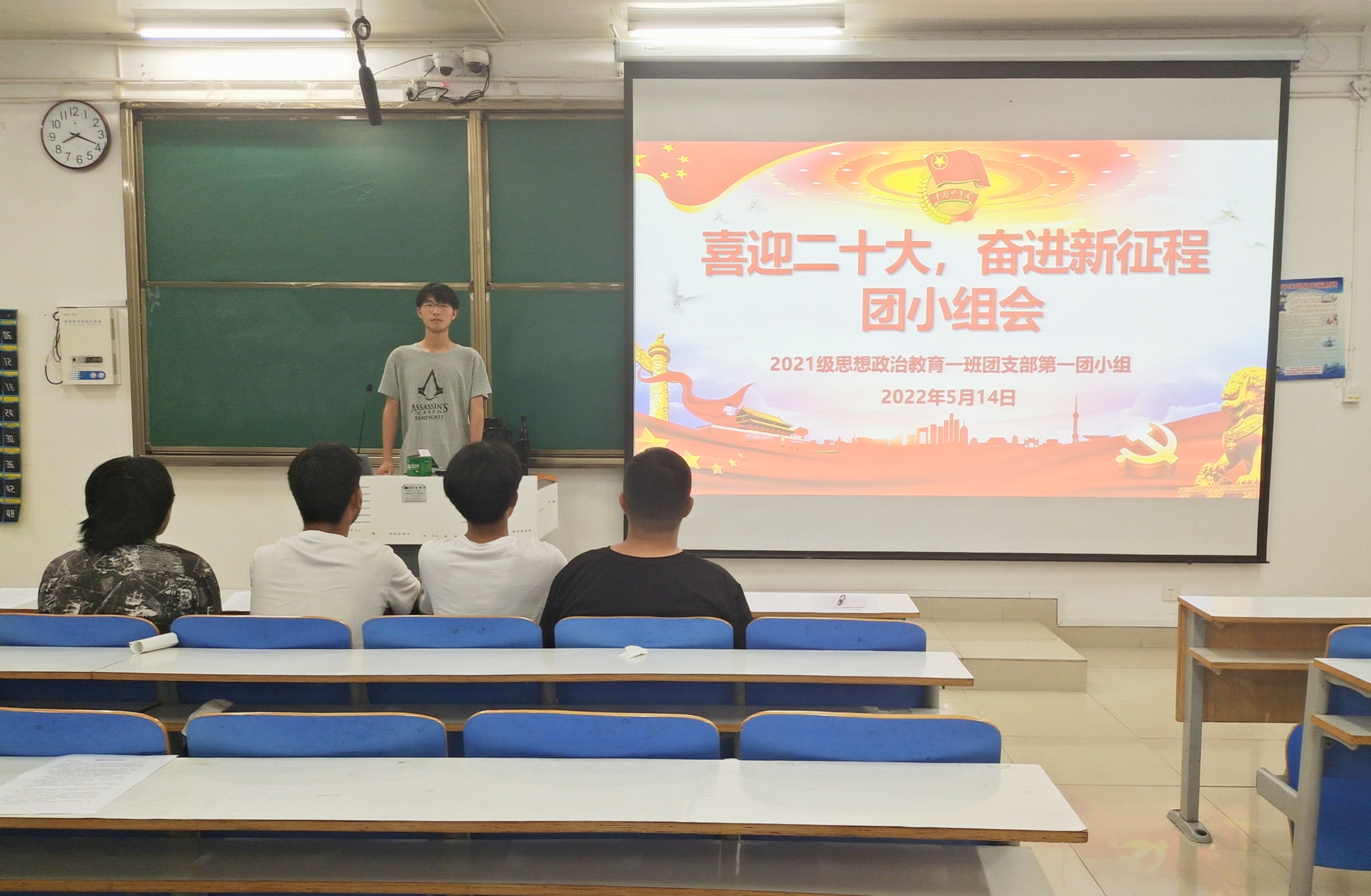 5月14日下午,beat365亚洲版官网2021级思想政治教育一班团支部第一团小组在社科楼514教室召开“喜迎二十大,奋进新征程”团小组会议。2021级思想政治教育一班团支部第一团小组全体成员共同参加了本次会议。会议由第一团小组组长孙宁主持。