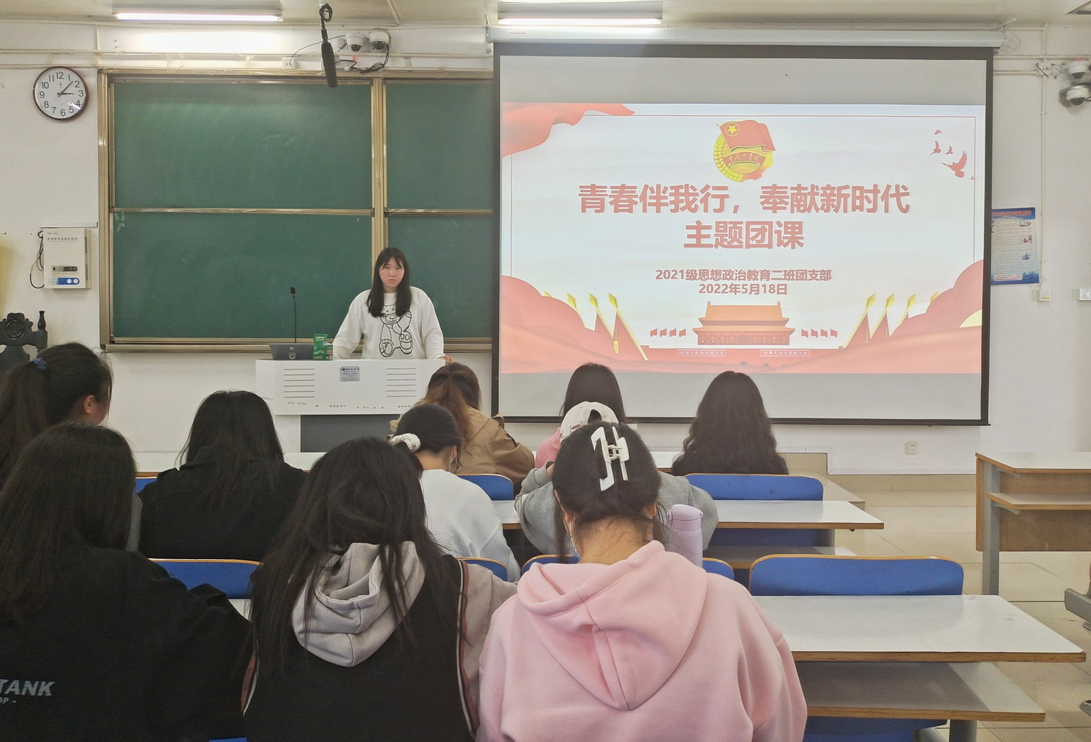 5月18日,beat365亚洲版官网2021级思想政治教育二班在社科楼514教室召开“青春伴我行,奉献新时代”主题团课。2021级思想政治教育二班全体团员参加此次团课。团课由团支书王婧欣主持。