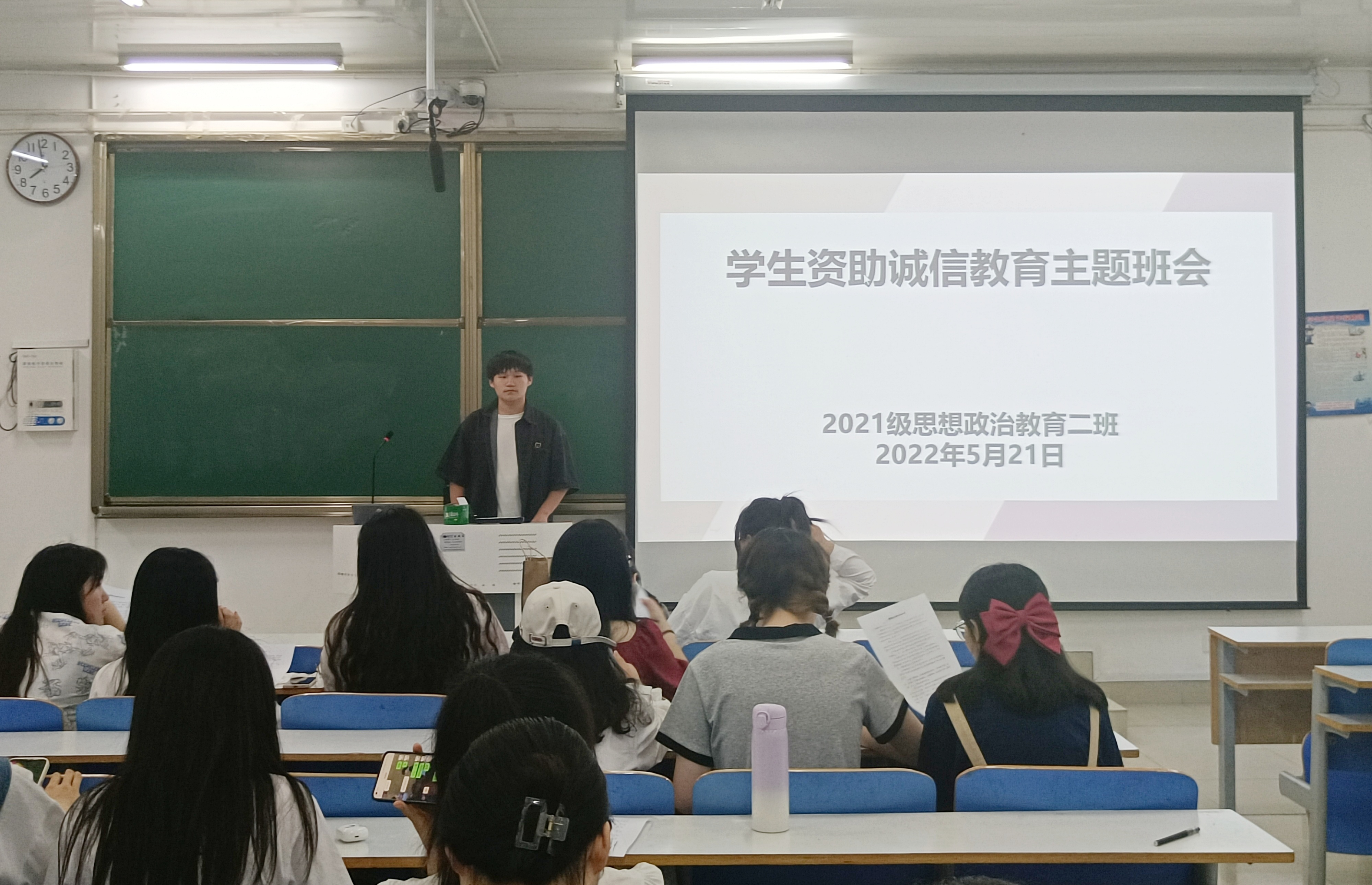 5月21日下午,beat365亚洲版官网2021级思想政治教育二班在社科楼514教室召开“学生资助诚信教育”主题班会。2021级思想政治教育二班全体同学参加此次班会。班会由副班长任振豪主持。