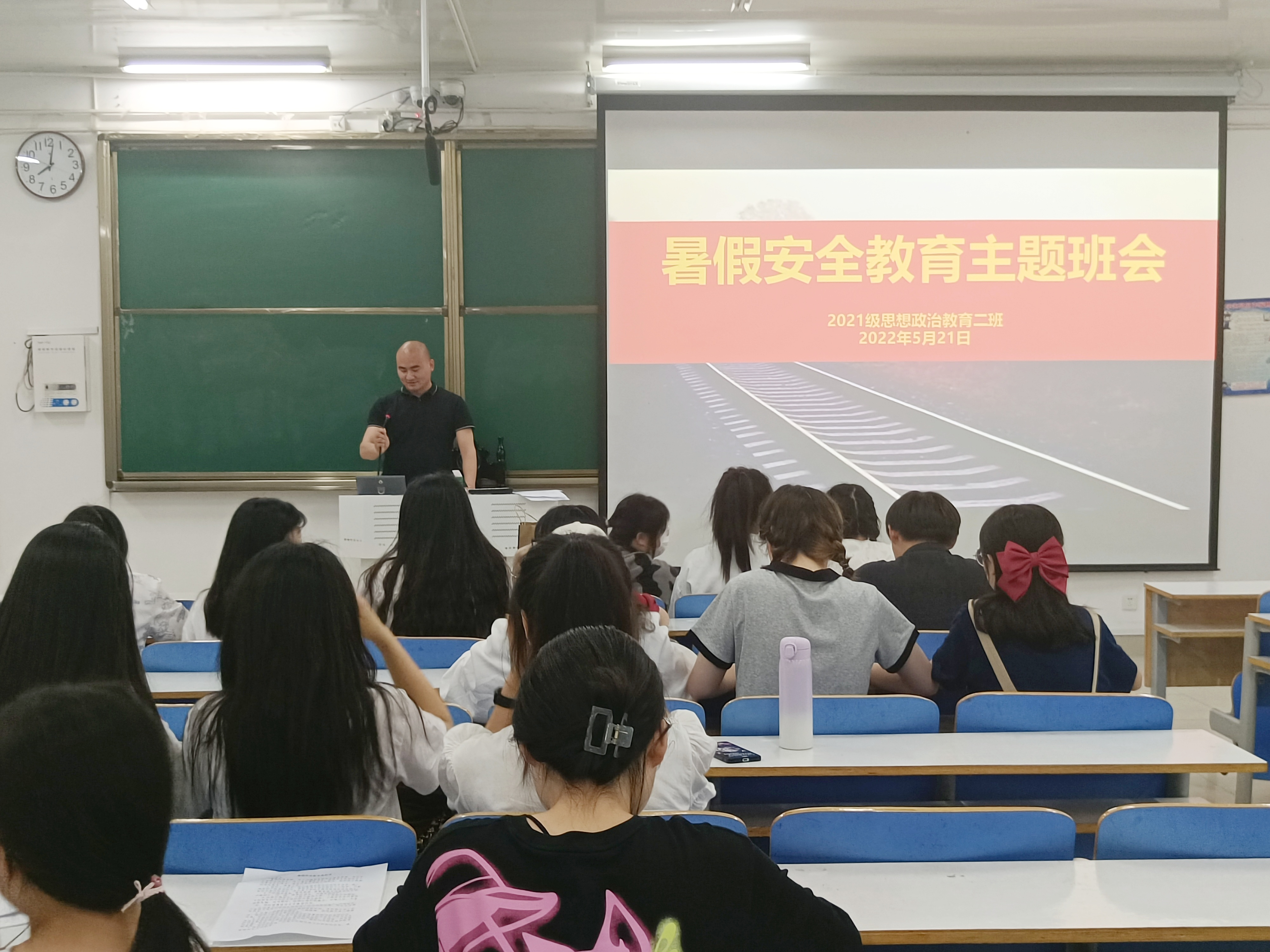 5月21日下午,beat365亚洲版官网2021级思想政治教育二班在社科楼514教室召开暑假安全教育主题班会。辅导员周文豪及2021级思想政治教育二班全体同学参加此次班会。班会由辅导员周文豪主持。