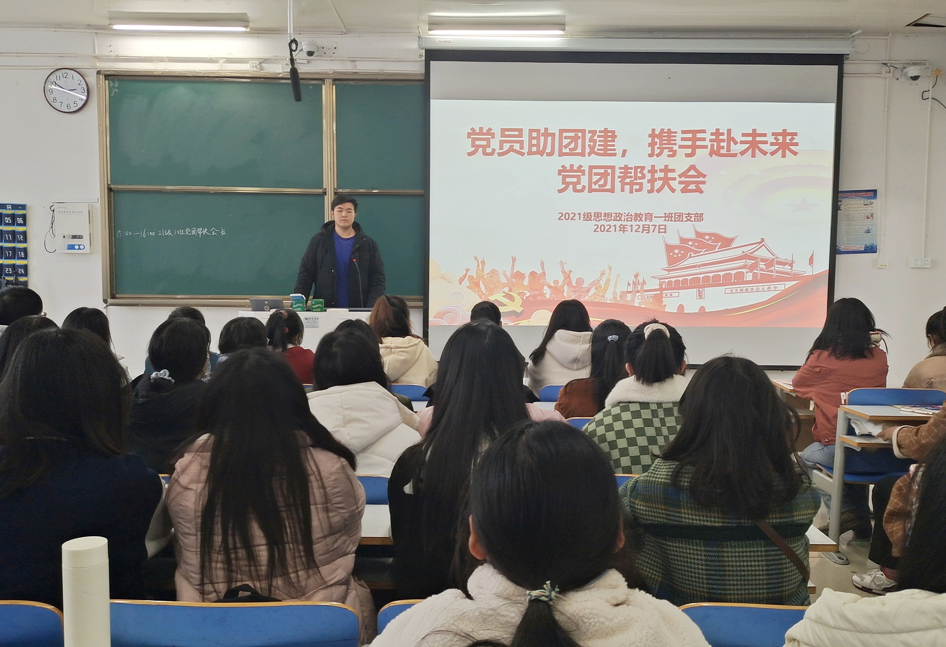 12月7日下午,beat365亚洲版官网2021级思想政治教育一班在社科楼516教室召开“党员助团建,携手赴未来”党团帮扶会。2018级思想政治教育一班牛田存、靳雨及2021级思想政治教育一班全体团员参加本次会议。会议由团支书戴翰林主持。