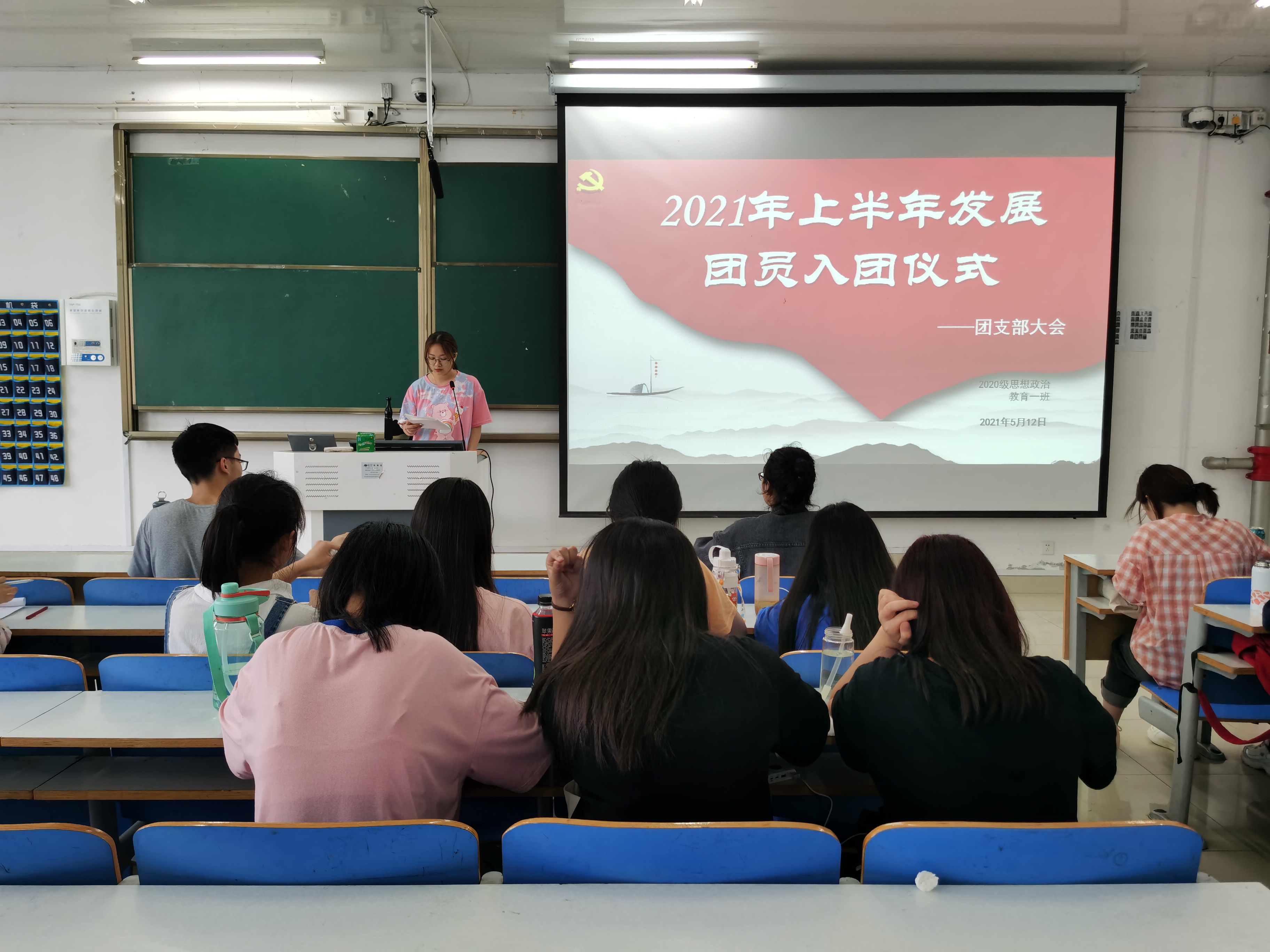 5月12日下午,beat365亚洲版官网2020级思想政治教育一班在社科楼516教室召开“新发展团员入团仪式”团支部大会。2020级思想政治教育一班全体同学参加了本次大会,大会由团支部书记卢茜雨主持。
