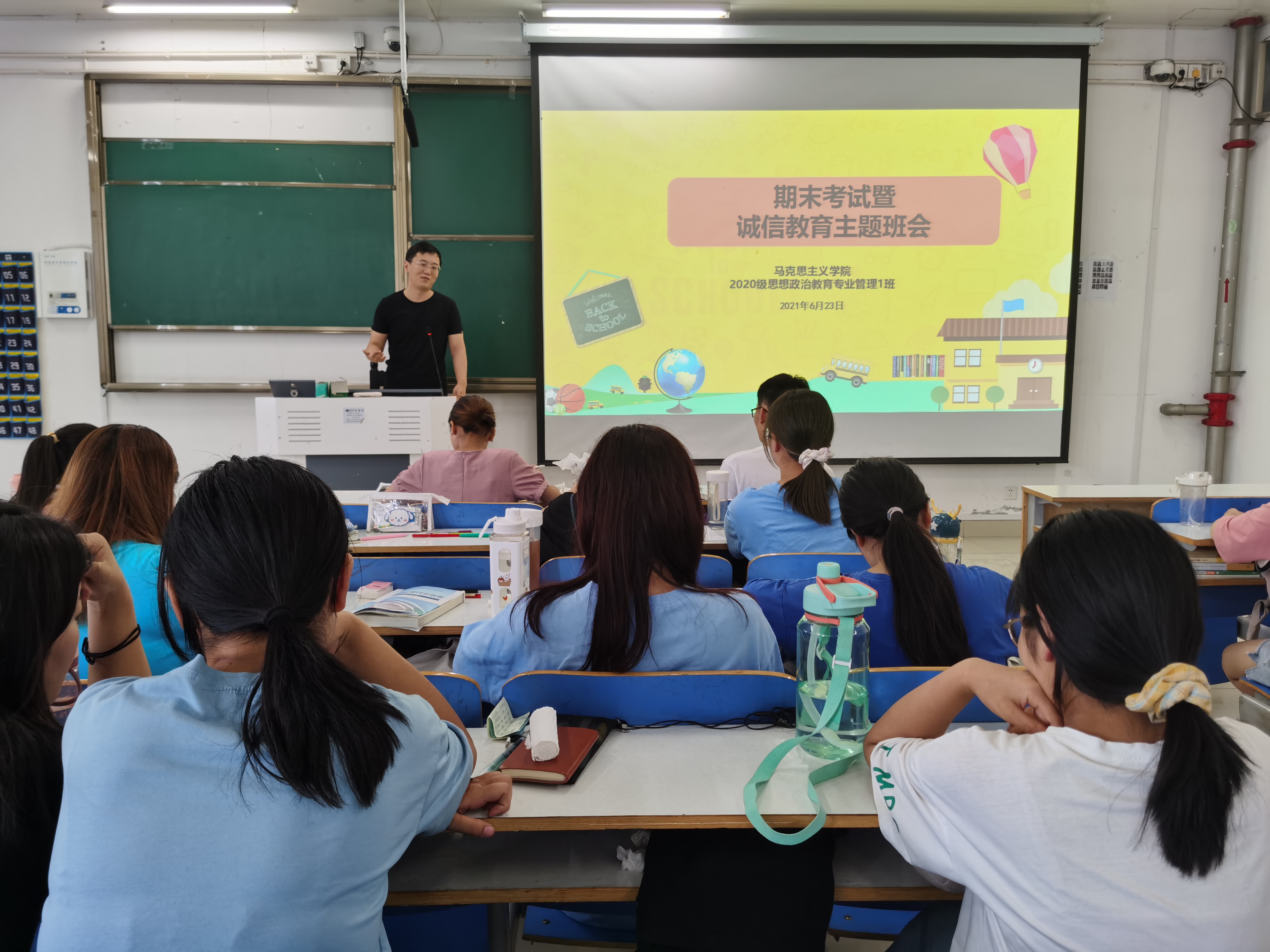 为加强学风建设,严肃考风考纪,6月23日下午,beat365亚洲版官网2020级思想政治教育一班在社科楼516教室召开期末考试暨诚信教育主题班会。辅导员曹栋及2020级思想政治教育一班全体同学参加了本次班会,班会由辅导员曹栋主持。