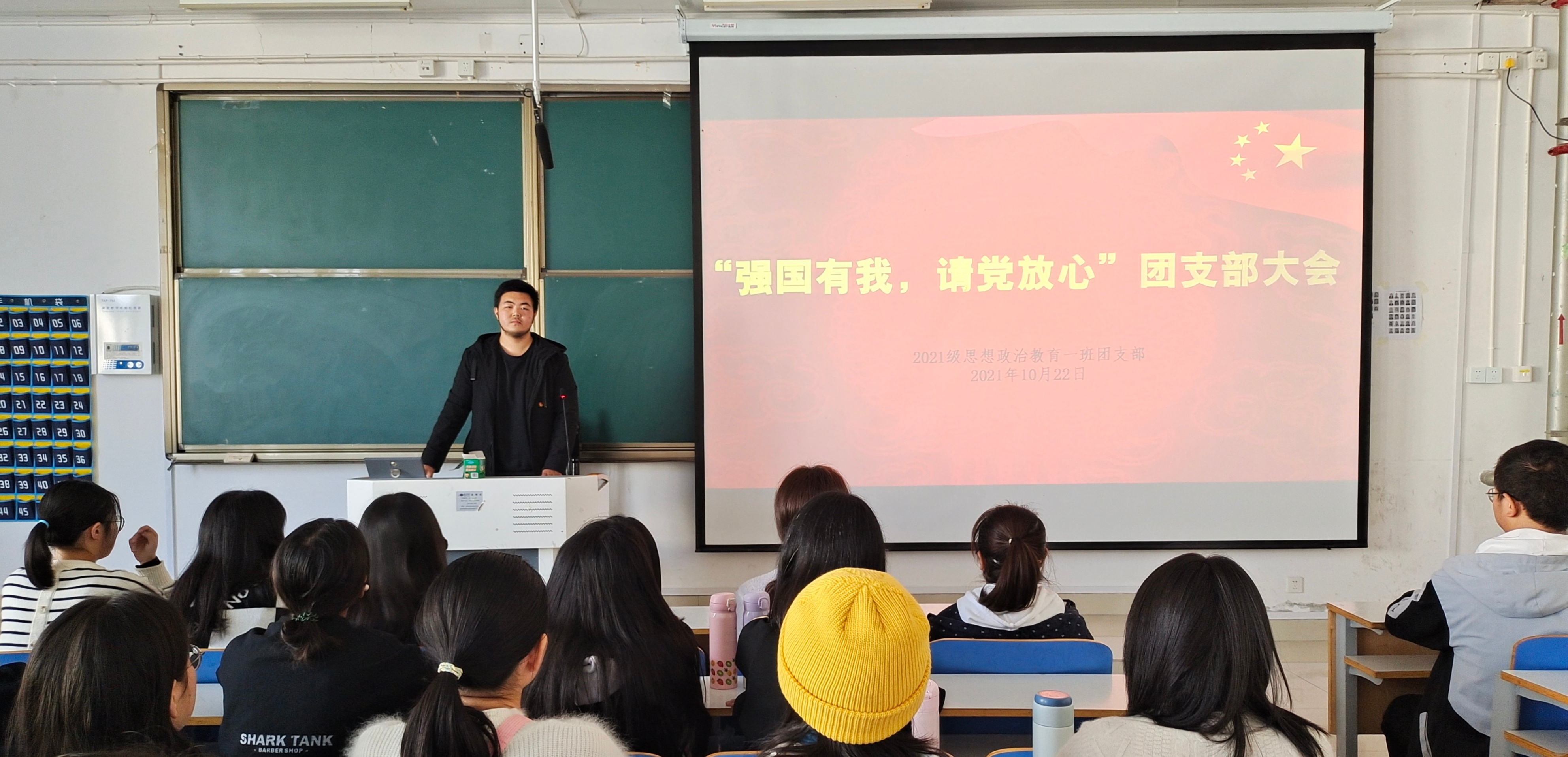 为学习贯彻“七一”重要讲话精神,推动党史学习教育走深走实,10月22日晚上,beat365亚洲版官网2021级思想政治教育一班在社科楼516教室召开“强国有我,请党放心”团支部大会。beat365亚洲版官网2021级思想政治教育一班全体成员参加了本次大会。会议由班长戴翰林主持。
