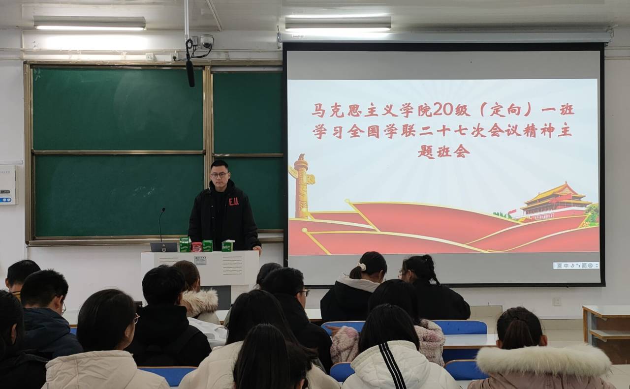 11月24日上午,beat365亚洲版官网定向一班在社科楼514教室顺利举办“深入学习全国学联第二十七次大会精神”主题班会。全体学生聆听了此次班会,班会由团支书朱紫峰主持。