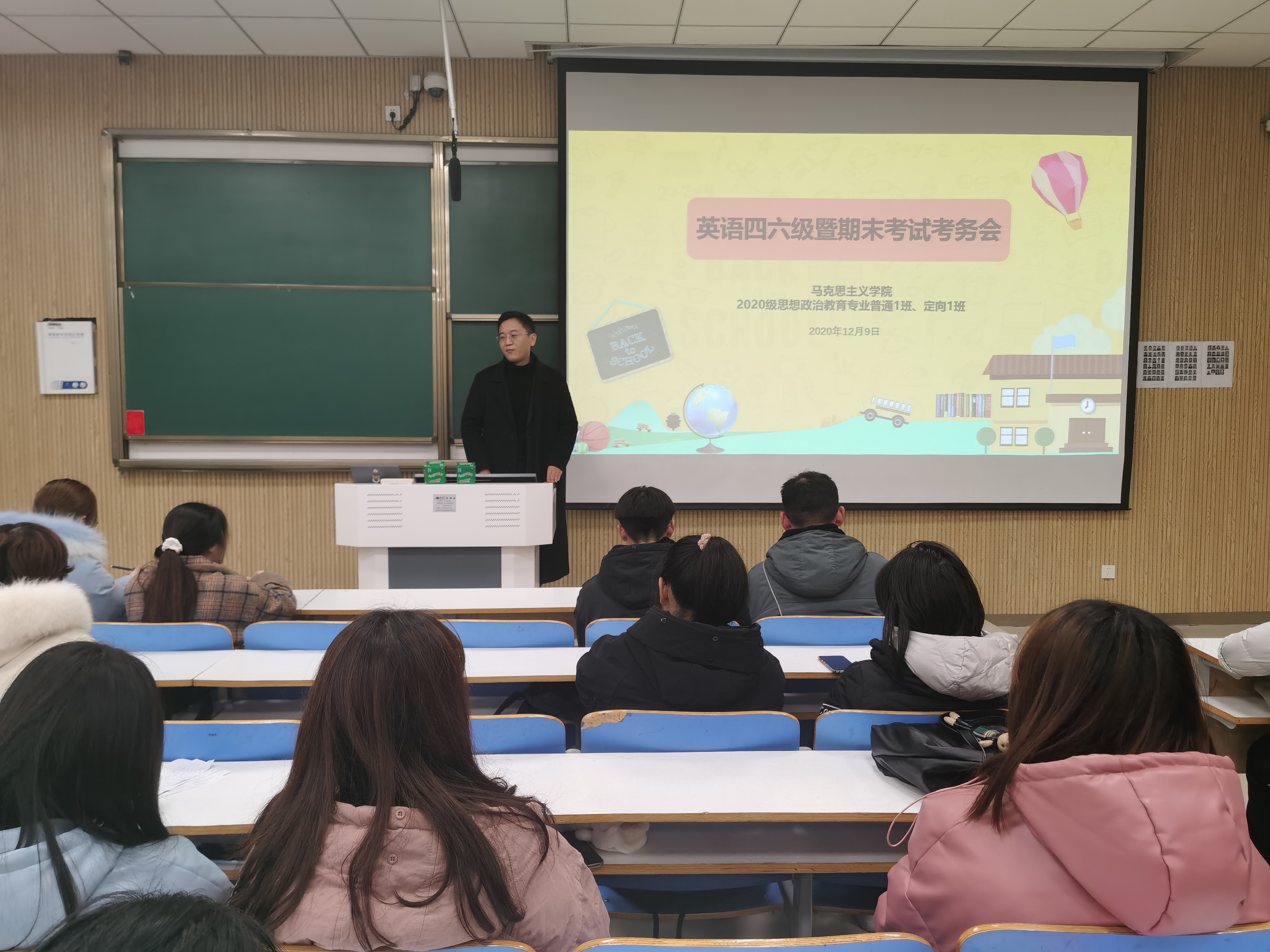 12月9日下午,beat365亚洲版官网2020级思想政治教育一班、定向一班在社科楼515教室顺利开展期末考试班级考务会,2020级思想政治教育一班、定向一班全体学生聆听了此次班会,班会由辅导员曹栋主持。