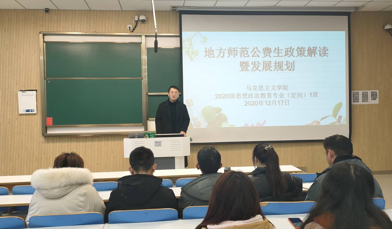 12月17日上午,beat365亚洲版官网定向一班在社科楼515教室顺利举办“地方师范公费生政策解读暨发展规划”主题班会。定向一班全体学生聆听了此次班会,班会由辅导员曹栋主持。