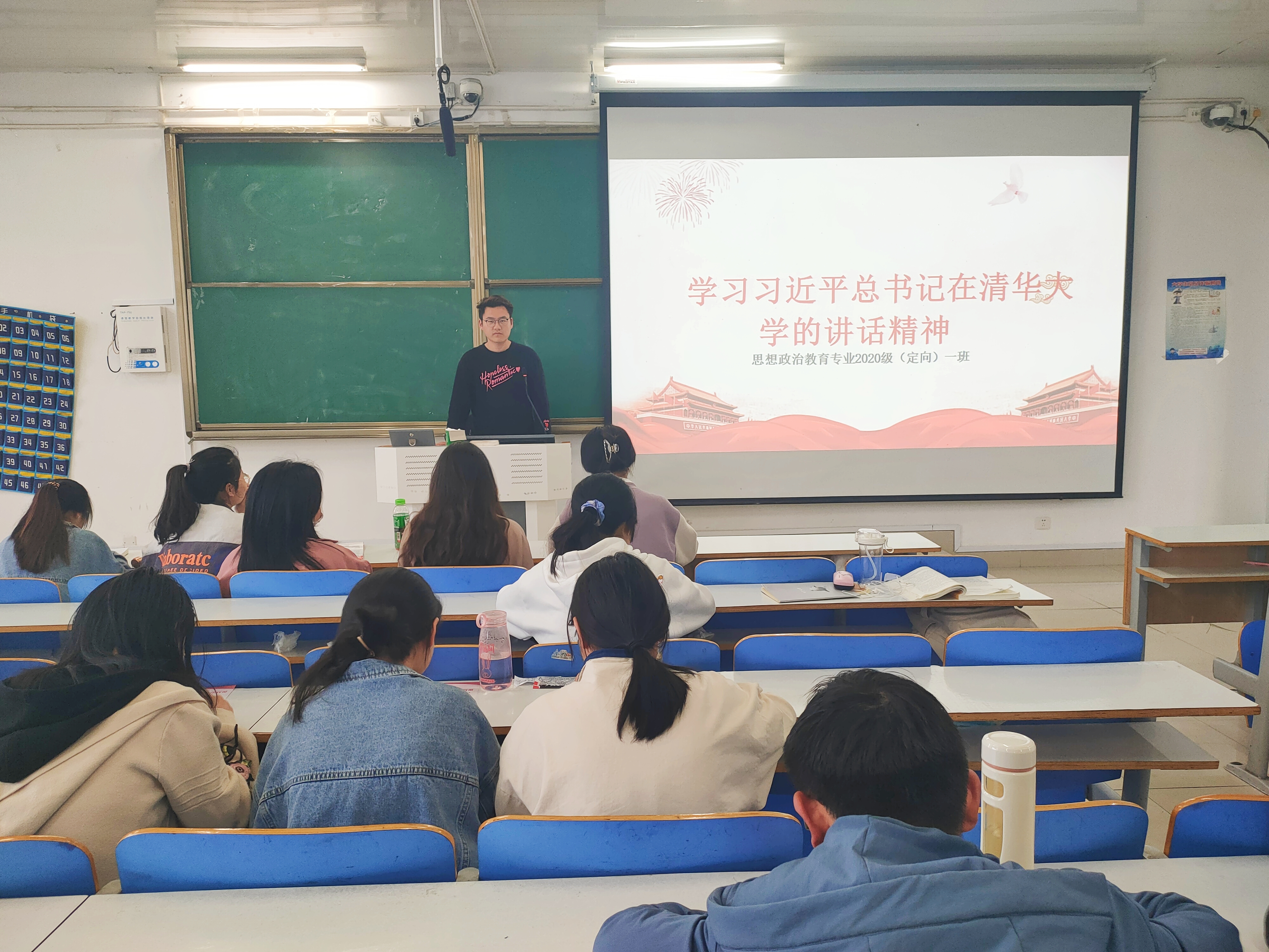 4月26日下午,beat365亚洲版官网思想政治教育(定向)一班在社科楼514教室顺利举办“学习习总书记在清华大学考察的讲话精神”主题班会。beat365亚洲版官网思想政治教育(定向)一班全体学生聆听了此次班会。班会由团支书朱紫峰主持。