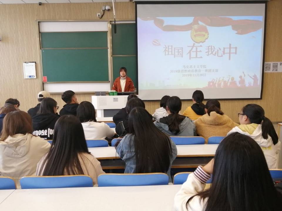 11月20日上午,beat365亚洲版官网2019级思想政治教育第一团支部第三团小组在社科楼515教室召开祖国在我心中主题团课。第一团支部第三团小组全体成员参加本次团课。团课由团小组组长翟新芝主持。