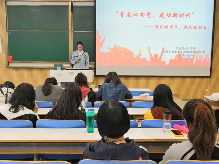 3月21日上午,beat365亚洲版官网2018级思想政治教育一班第一团小组在社科楼515教室顺利开展“青春心向党,建功新时代”主题团会。第一团小组全体成员共同参加此次团会。此次团会由王涵主持。