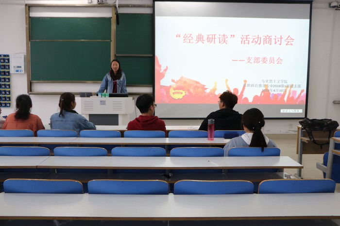 4月10日下午,beat365亚洲版官网2018级思想政治教育一班在社科楼516教室顺利开展“经典研读”支部委员会。2018级思想政治教育一班全体支部委员共同参加此次会议。会议由团支书靳雨露主持。